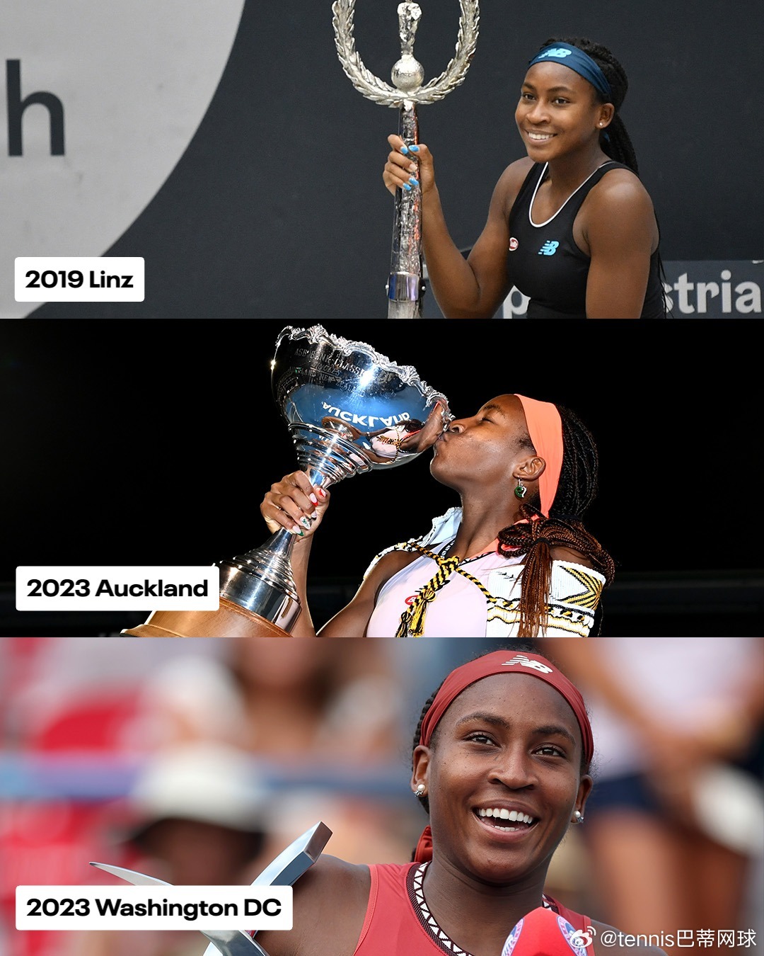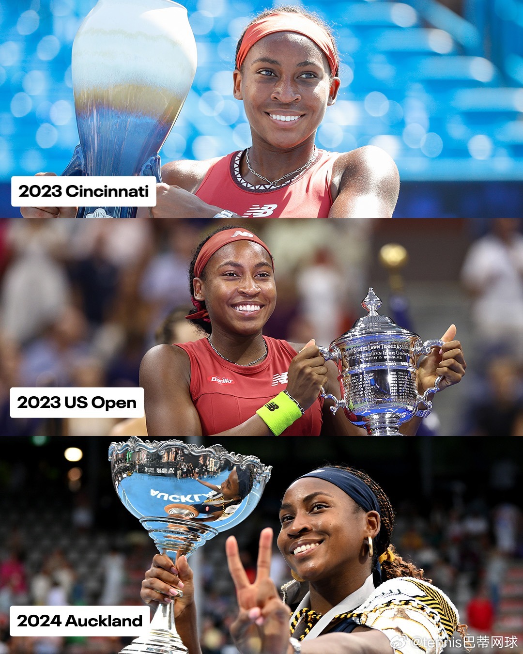✅ 2019年 林茨✅ 2023年 奥克兰✅ 2023年 华盛顿✅ 2023年 辛辛那提✅ 2023年 美网✅ 2024年 奥克兰✅ 2024年 北京✅ 2024年 WTA年终总决赛✅ 2025年 武汉❌ 2026年 迈阿密