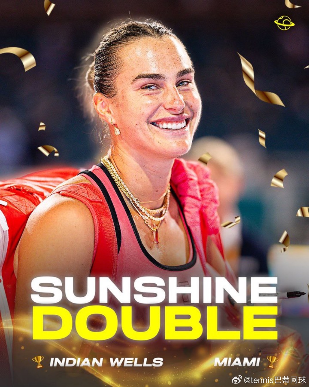 萨巴伦卡也成为现役第三个达成阳光双赛双冠的球员wta萨巴伦卡vs高芙萨巴伦卡阳光双冠萨巴伦卡卫冕迈阿密赛冠军