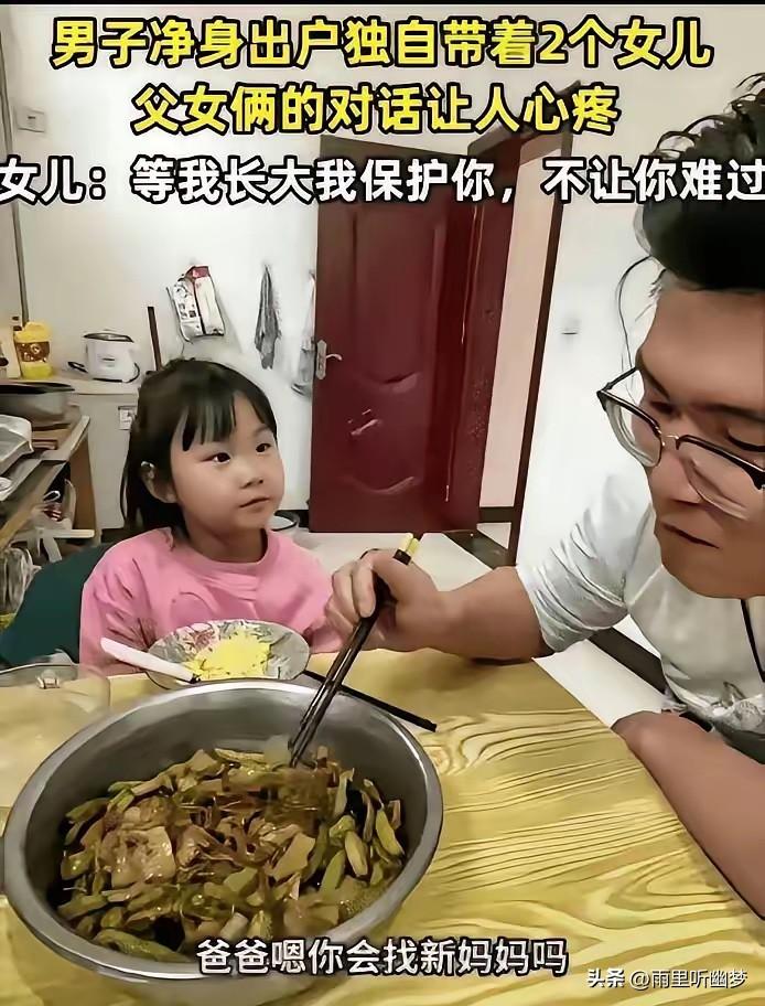 泪目!“爸爸,你会找新妈妈吗?” 6岁的小女儿问出这句话时,山西的这位父亲,正在出租屋里给她热牛奶。 他愣了几秒,轻声说:“爸爸不找,就带着你和姐姐,好不好。” 女儿仰起脸:“那我长大了保护你,不让你难过。” 他没有接话,只是抬手摸了摸女儿的头,指尖有些抖。 这个画面,让无数人泪目。 不是因为惨,是因为——这个男人明明一无所有了,却把自己能给的,全都给了孩子。 净身出户那天,房子、存款,他什么都没要。 身边人都说他傻:一个男人带两个女儿,日子怎么过?以后还怎么再找? 他没争辩。 他知道,如果他不要,两个女儿就没有家了。 他不能为了自己未来的“轻松”,把孩子的童年交到别人手里。 从那天起,他打零工、搬货、跑腿,什么活都干。 每天天不亮出门,赶在女儿放学前回来。 租一间小民房,自己穿旧衣服,省吃俭用,但女儿想吃的零食、想要的文具,他从不犹豫。 大女儿懂事得让人心疼,放学回来就收拾屋子、照看妹妹。 小女儿年纪小,却格外敏感,爸爸累了会搬凳子让他坐,吃饭时会把菜夹到他碗里。 他从不让孩子看到自己的疲惫。 只等夜深了,女儿睡熟了,才坐在床边,默默看着她们的小脸,消化一天的辛苦。 有人问他:不累吗? 累。 但每次想到那句“我长大了保护你”,他就觉得,再难也能撑下去。 他也不是没想过以后——女儿要上学,开销越来越大,一个人扛着所有,确实吃力。 但他从没动过“找个伴”的念头。 不是不需要人分担,而是不敢赌。 怕来的人不能真心对待女儿,怕女儿心里觉得被冷落,怕打破现在这个虽然清贫、却安稳的小日子。 在他心里,女儿就是全部。 这个故事在网上传开后,有人说他是“真正的男人”,有人说两个孩子懂事得让人心疼。 但我更想说的是—— 父爱从来不是轰轰烈烈,而是这些不起眼的日常: 是宁愿净身出户,也要把女儿带在身边; 是自己吃苦,也不让孩子受委屈; 是明明可以为自己考虑,却把女儿的未来放在第一位。 而孩子的爱,同样纯粹得让人动容。 她们不懂什么是净身出户,不懂爸爸为什么总是那么忙。 但她们知道,爸爸很辛苦。 所以姐姐学会了藏起委屈,妹妹学会了给爸爸捶肩。 这一家三口,穷吗?确实穷。 但他们拥有的,比很多家庭都多—— 是相互依靠的温暖,是彼此守护的真心。 我们总说父爱如山,沉默却厚重。 这位父亲用最朴素的选择告诉我们: 真正的担当,不是拥有多少,而是愿意放弃什么。 真正的爱,不是嘴上说说的承诺,而是日复一日的坚守。 他不富有,但他给了女儿最踏实的安全感。 两个女儿也不富裕,但她们给了父亲最纯粹的爱。 这大概就是亲情最好的样子: 你陪我长大,我护你到老。 生活再难,我们在一起,就不怕。 大家认为呢?