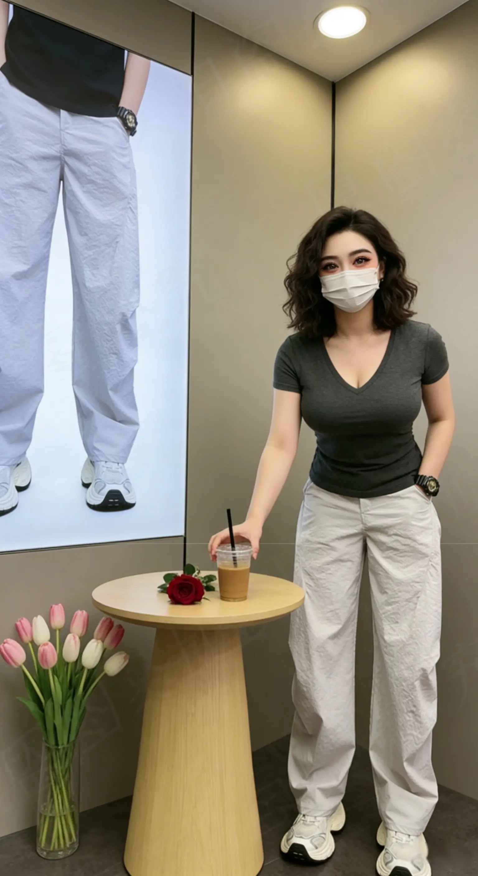 优雅职场风,浅蓝色衬衫搭配灰色高腰裤,气质满分!