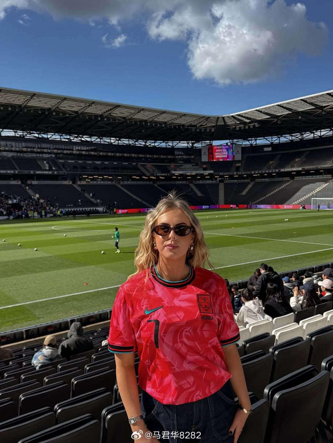 哇,汉娜去看韩国国家队的比赛了。