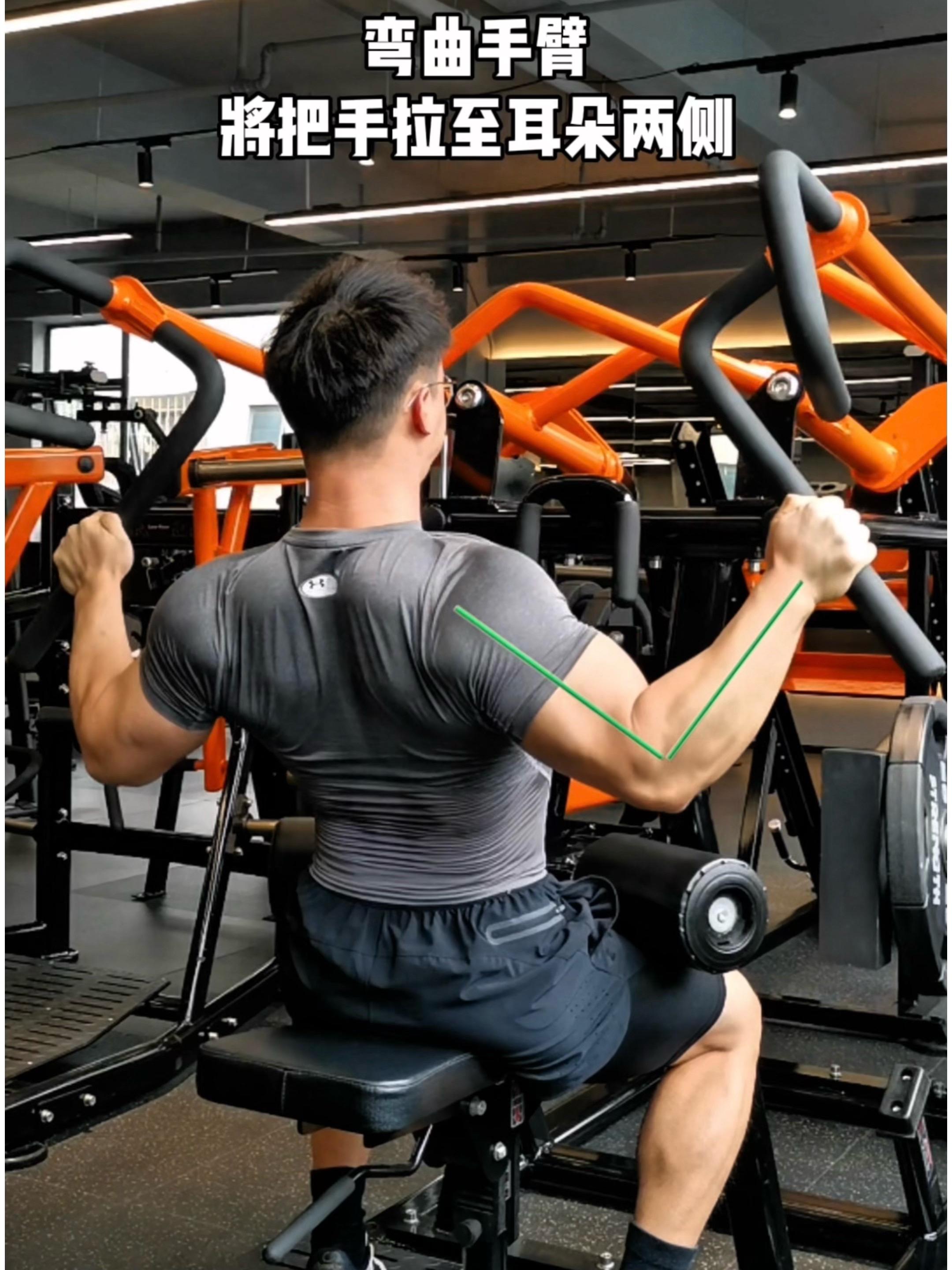 V把高位下拉,保姆级教程! 一、目标肌群 V把高位下拉,背阔肌 二、练...
