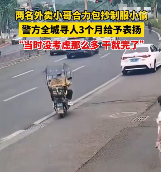 盐城街头暖心一幕!外卖小哥载警追贼,平凡人尽显英雄胆 2026年3月28日,江苏盐城街头,一场紧张刺激的警民擒贼行动火速上演,外卖小哥跨界相助,狂奔两公里的窃贼终落法网。 (个人观点仅供参考,无任何不良引导) 寻常日子里,外卖骑手向来步履匆匆,为三餐生计奔波不停。谁能想到,平凡岗位上的普通人,竟能在危急时刻挺身而出,尽显侠肝义胆?常言道邪不压正,更有路见不平一声吼,这位周师傅,用实打实的行动,道出了普通人最质朴的正义担当。 窃贼作案后仓皇逃窜,脚步慌乱一心脱逃。民警孙凯紧盯目标,徒步猛追两公里,气喘吁吁体力透支,双方僵持不下,抓捕行动险些陷入僵局。千钧一发之际,外卖骑手周师傅驾车途经现场,一眼察觉事态紧急。 民警快步上前说明原委,求助之意恳切直白。周师傅全然不顾送餐时效,不计较投诉罚款风险,不假思索应允相助。民警侧身坐上外卖电动车,车身疾驰向前,风驰电掣般追赶逃犯。徒步窃贼哪能抵得过电动车速,不过片刻便被牢牢追上,束手就擒再无逃脱可能。 这份果断,胜过万千豪言;这份勇敢,尽显市井担当。外卖小哥争分夺秒本为糊口,却能放下个人得失,助力民警守护一方平安,这般举动,怎能不让人心生敬佩?民警恪尽职守穷追不舍,小哥仗义出手鼎力相助,警民携手,尽显同心合力的磅礴力量。 事后专项奖励,是对这份善举的最好认可。平凡从不是平庸的借口,普通人亦能铸就不凡。心存善念,行有担当,便是世间最动人的风景。愿这份侠义之气,传遍街头巷尾,温暖整座城市。