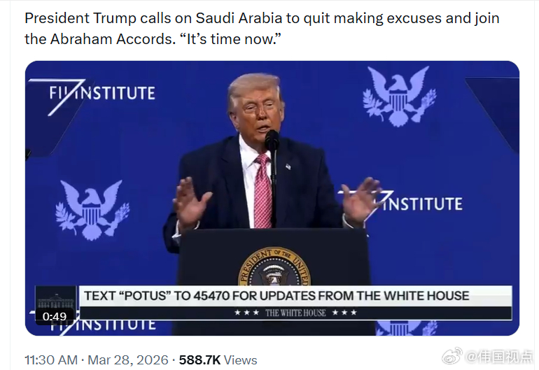 特朗普总统呼吁沙特阿拉伯停止找借口,尽快加入《亚伯拉罕协议》。