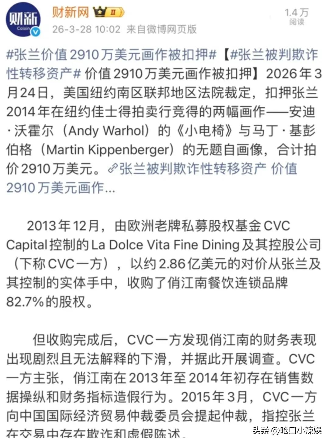 张兰老赖被抓! 老赖就是一辈子的老赖,张兰爱好者们赶紧去买成本一块一毛八的粉啊