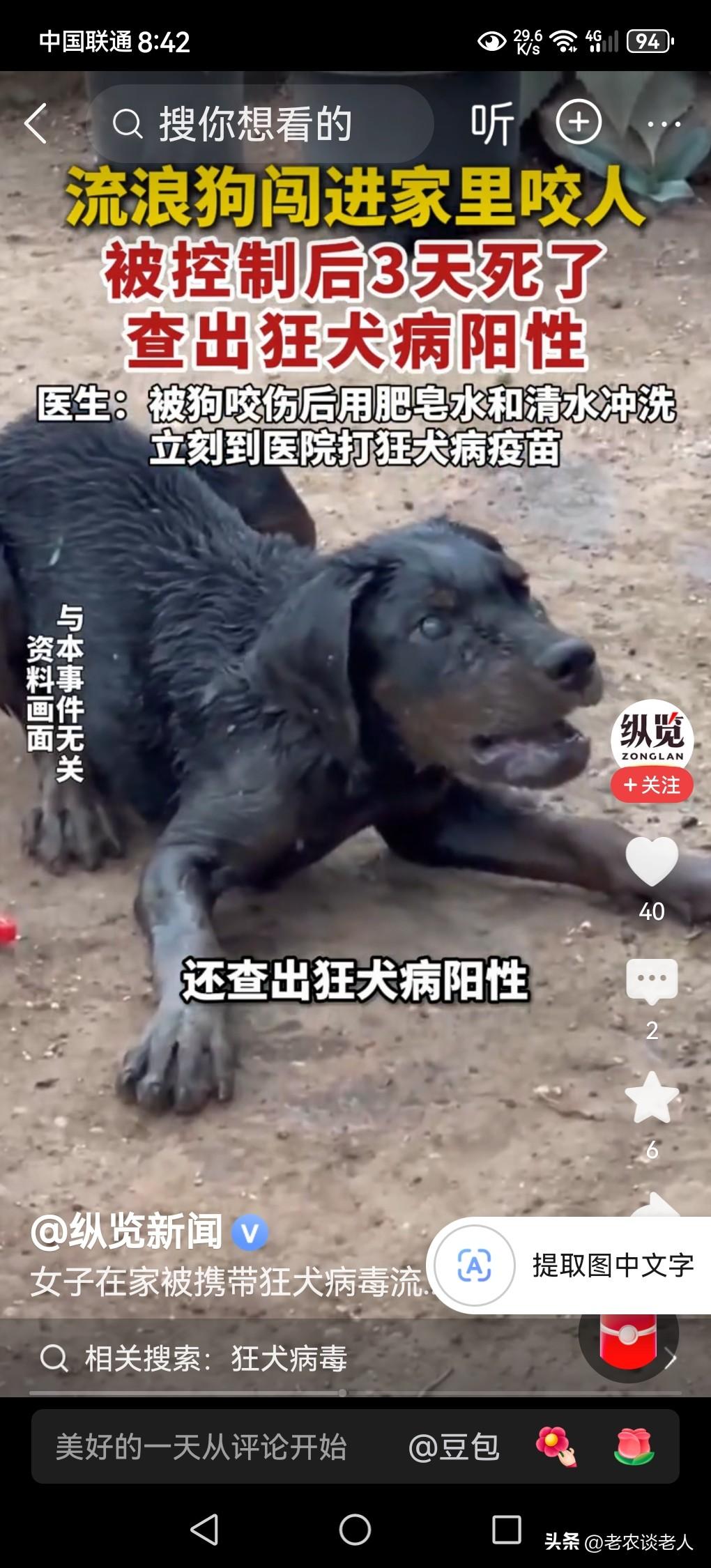 女子被流浪狗咬伤3天后狗死了! 流浪狗在社会上随处可见,是一种平常不过的事情。但是,这些流浪狗有很多都是已经出现了生病的状态,而被主人抛弃的,其中有很多流浪狗已经患上了狂犬病。患上狂犬病的这种流浪狗,在社会上流浪,对社会将会造成非常大的安全隐患,提醒大家千万要注意。 在我们的日常生活中,流浪狗咬人事件经常发生,追责也是相当困难的。 据媒体3月29日报道,焦作一女子因家门没有关严,一只患有狂犬病的流浪狗,尾随入室,咬伤了她的腿。受伤后,该女子立即前往医院就诊,经医生诊断,其伤口属于狂犬病暴露级别中最严重的“三级暴露”,情况十分危险,需立即处理,否则有生命危险。涉事流浪狗3天后狗死了,经检测发现,该流浪狗携带的狂犬病毒检测呈阳性。 通过这则新闻事件回到我们的现实生活中来,本人认为,大家在日常的生活中,遇见所有的流浪狗,一定要加倍注意,防止一些患了狂犬病的流浪狗,借机伤人,特别是在徒步走路的过程中,防止身后尾随的患有狂犬病的流浪狗伤人。 在日常居家的情况下,家里的院门家门一定要关紧,避免流浪狗随时随地蹿入家中伤人。 一般流浪狗在社会上流浪,是非常难以找到流浪狗的主人的,一旦出现流浪狗伤人,追责是相当困难的。所以大家一定要加倍的注意避免流浪狗伤人事件的重演,毕竟保护自己的身体是头等大事,大家千万不要掉以轻心。