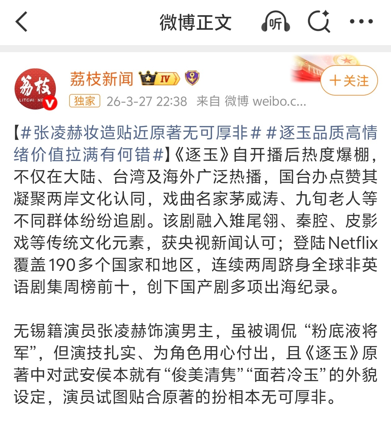 张凌赫妆造贴近原著无可厚非这么说吧,荔枝新闻把实用主义推向极端进行收割,也是无可