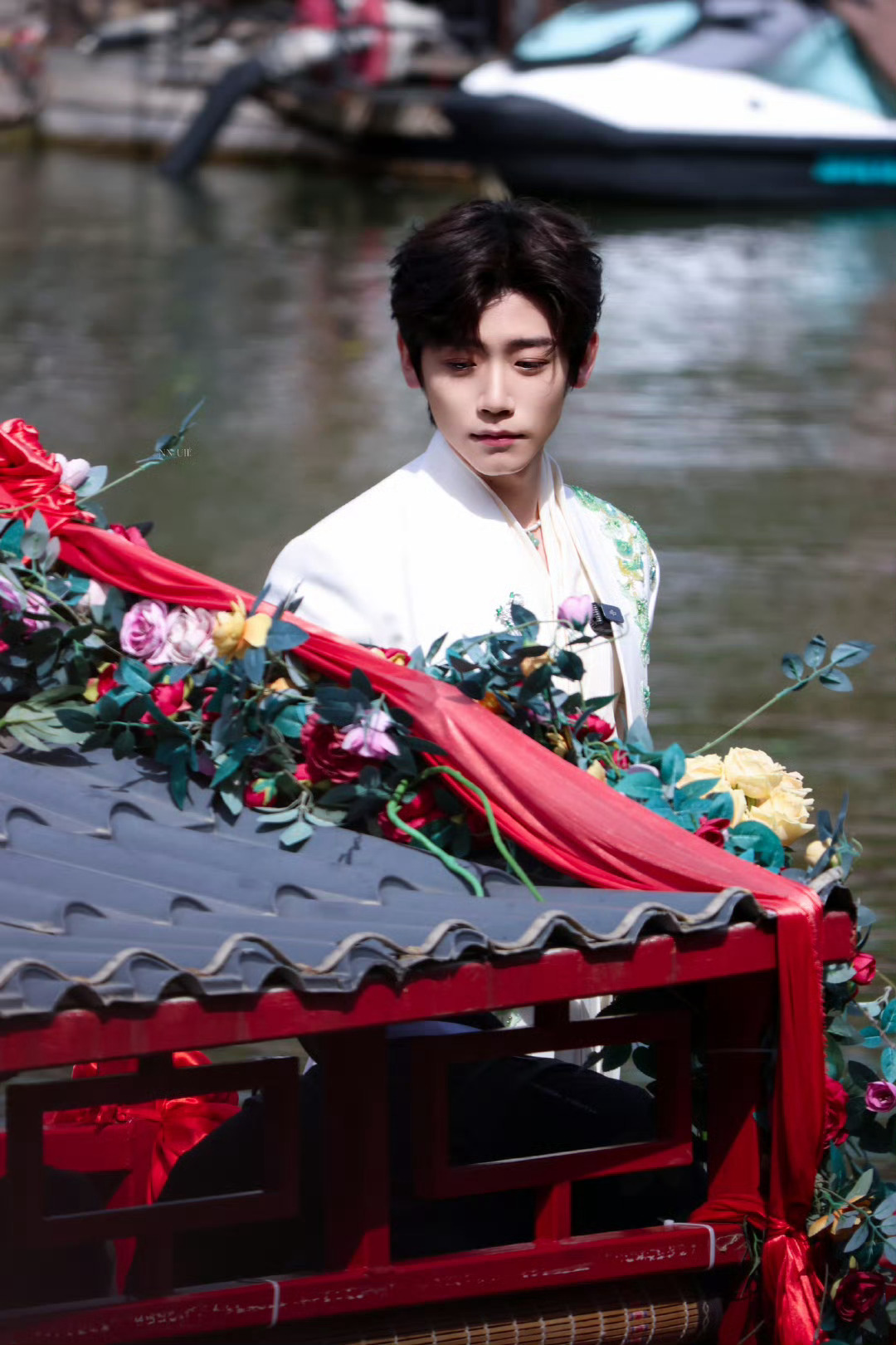 李卿来清明上河园了 白色西装的造型真的是又帅气,又觉得好迷人,李卿来清明上河园了,看到昨天的线下活动的时候,真的是温润如玉的公子