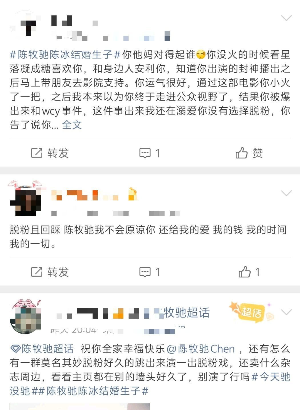 陈牧驰吴楚一那些说和陈冰在一起的陈牧驰是假人的粉丝们,都脱粉了