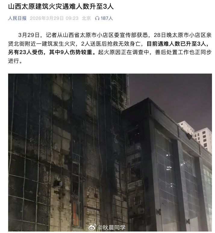 太原火灾已致3死23伤我的天啊,希望大家都平平安安的!