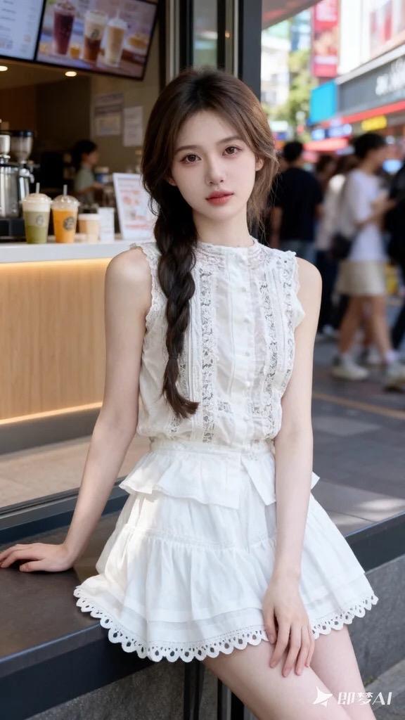 网红白裙造型 白裙甜心 甜美白裙造型 甜美白裙 奶茶甜美少女