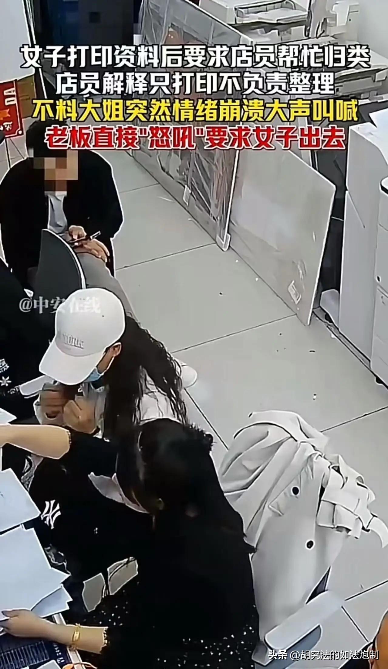自寻羞辱!四川,一女子打印资料,要求店员帮忙归类。店员忙不开,解释称:只负责打印,不负责整理。谁曾想,女子突然情绪崩溃,在店里大喊大叫,模样吓人。可老板的一个举动,女子的眼神瞬间变得清澈!网友:这个社会什么时候开始“我弱我优先”了? 一女子来到打印店打印资料,由于打印的资料实在太多了,而且各种类目也很多,为了避免以后麻烦,女子便在店里进行整理。 可女子纵然忙了一头汗,眼前还是有一堆的资料,他瞥了一眼旁边正在玩手机的店员,心里顿时气,不打一处来。 一下子打印了这么多资料,也算是打印店的大客户了,这店员怎么一点眼色都没有?就不知道主动帮帮忙吗? 女子心里憋着火,态度也有些生硬,他要求店员过来和他一起整理。 没想到店员毫不犹豫的便拒绝了,而且还给出了一个看似非常合理的解释。 打印店只负责进行打印,没有义务帮顾客整理资料。 其实这也非常好理解,店员的工作仅仅是打印而已,既然打印完了,就意味着工作已经结束,至于帮不帮顾客整理资料,就要看店员愿不愿意了。 还有更重要的一个原因,帮顾客整理资料,毕竟不属于工作的范畴,如果被老板撞见了,不知道的还以为店员挺清闲的,影响也不好。 可女子根本管不了那么多,他只知道面前的这么多资料,他让店员帮忙,店员却拒绝了,根本就没有把他这个大客户看在眼里! 女子的情绪有些崩溃直接上脑了,开始在店里大吵大闹。 女子的行为,很快也引起店里其他顾客的注意,在隔间的老板也听到了,赶紧跑了出来。 在了解完情况之后,老板神情严肃,突然一声怒吼“给我出去!” 女子可能没想到老板会是这种态度,直接被吓得呆愣在原地,等他反应过来的时候,眼神也变得清澈起来。 看着老板气汹汹的样子,女子也不敢说什么了,收拾完资料后,便离开了打印店。 有人调侃,看来女子是真把自己当成什么重要的人了,认为所有的人都应该主动帮助他才对,都要围绕着他一个人转。打印店本来就没有帮顾客整理资料的义务,可女子却要把这项义务强加到店员的身上,不同意就大吵大闹。 这就像是去路边摊买了一份煎饼果子,老板给做好之后,女子要求老板切成每段宽一厘米的小段,然后用不锈钢叉子亲自喂到他的嘴里差不多。 不过也有人为女子感到同情。作为顾客来讲,在遇到棘手的问题之后,第一时间肯定是想着寻求帮助,女子请求店员帮忙整理资料,也是一个很正常的要求。 错就错在女子在被拒绝之后在店里大吵大闹。更何况打印店里当时还有其他的顾客,女子这么一闹,知情的顾客还好说,那些不知情的顾客还真以为是打印店的服务不到位呢。 如此一来,势必会对打印店的生意造成一定的负面影响,怪不得老板会如此的生气。 《治安管理处罚法》第26条规定,有下列行为之一的,处警告或者五百元以下罚款;情节较重的,处五日以上十日以下拘留,可以并处一千元以下罚款:(一)扰乱机关、团体、企业、事业单位秩序,致使工作、生产、营业、医疗、教学、科研不能正常进行,尚未造成严重损失的。 打印店的老板仅仅是把女子给赶了出去,要是老板固定证据选择报警的话,就算女子的行为不构成违法,也得被帽子叔叔给批评一顿。 不过话又说回来,店主吼了女子,女子的眼神瞬间变得清澈,这也可能说明,女子的本意不想闹成这样,单纯就是性子上来了而已。 只不过如今,那种我弱我优先的想法,是时候该改变一下了。 对此你怎么认为?
