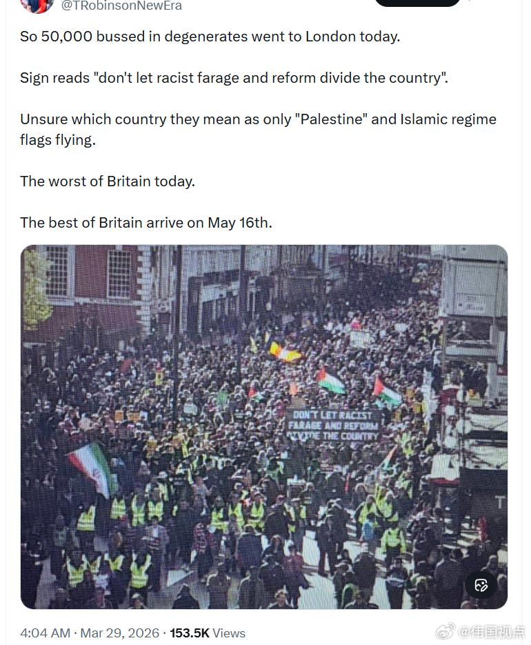今天有大约50000名被组织乘车来的激进示威者涌向伦敦。