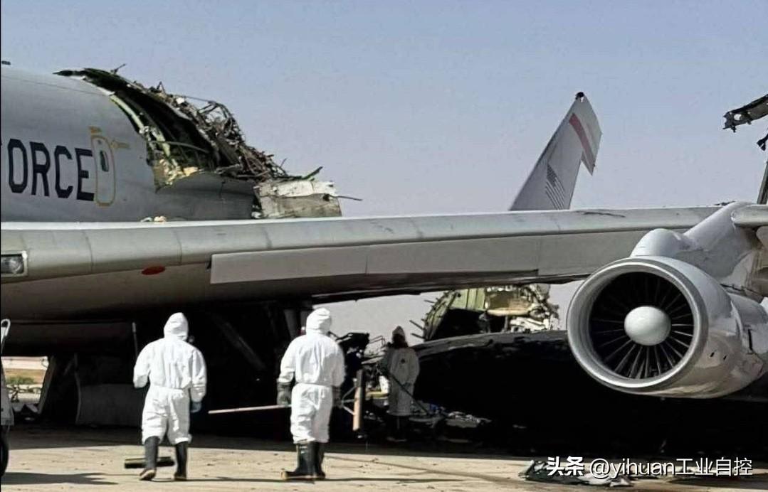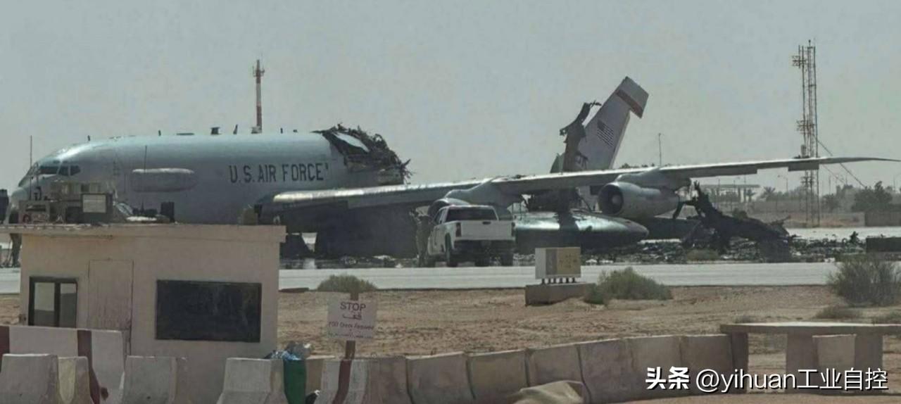 大家看看,部署于沙特苏尔坦亲王空军基地的这架E-3G预警机被拦腰斩断,断裂部位正好位于圆盘天线要害处,绝对不是什么“受损”,已经被伊朗人彻底摧毁了! E-3空中预警与控制(AEW&C)飞机已于20世纪90年代停产,包括这架被摧毁的E-3G在内,美国空军总共只有16架这种飞机,参与“史诗狂怒行动”的有6架。不好意思啊,现在只能说还有5架E-3G在中东地区! 伊朗空天军与海军此次联手打击苏尔坦亲王基地行动,可谓经典之战,此战还至少摧毁一架KC-135空中加油机、多架空中加油机严重受损。