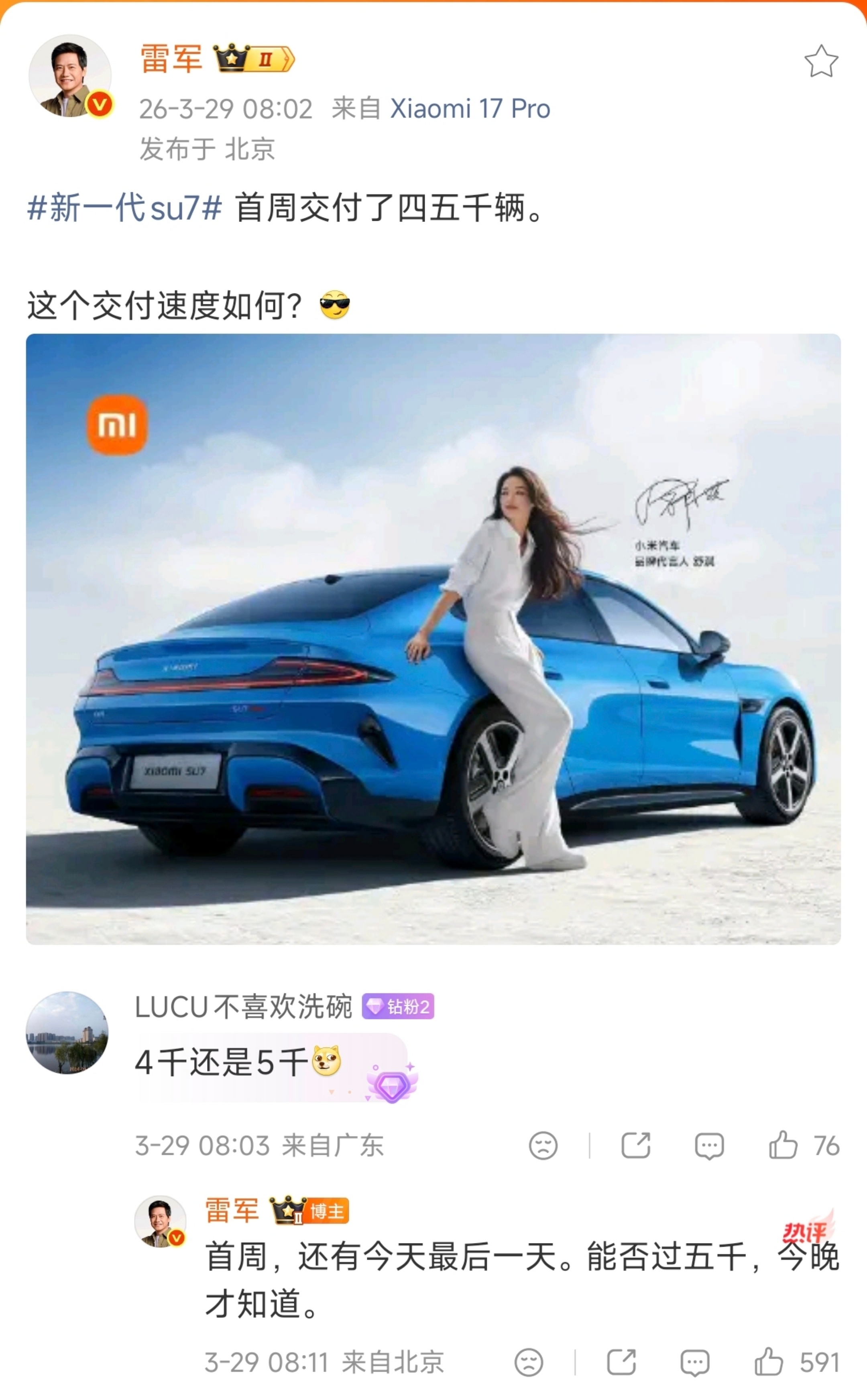 小米新SU7车主很多来自BBA 其实两代SU7的车主里面都有大量BBA车主,雷总