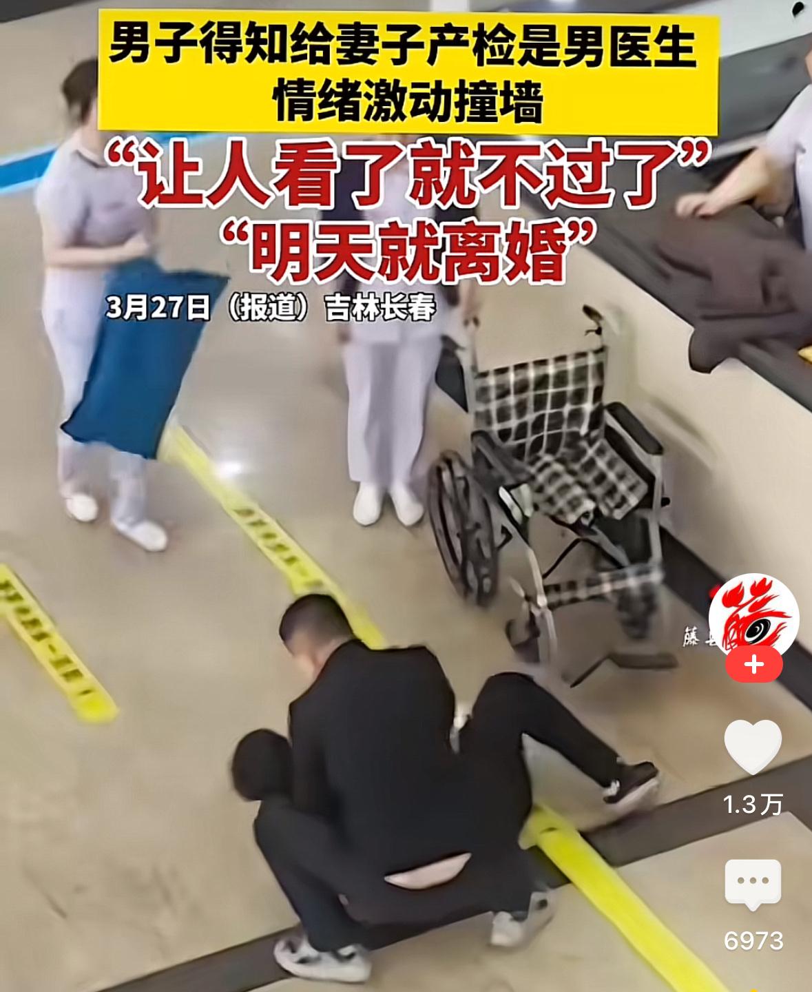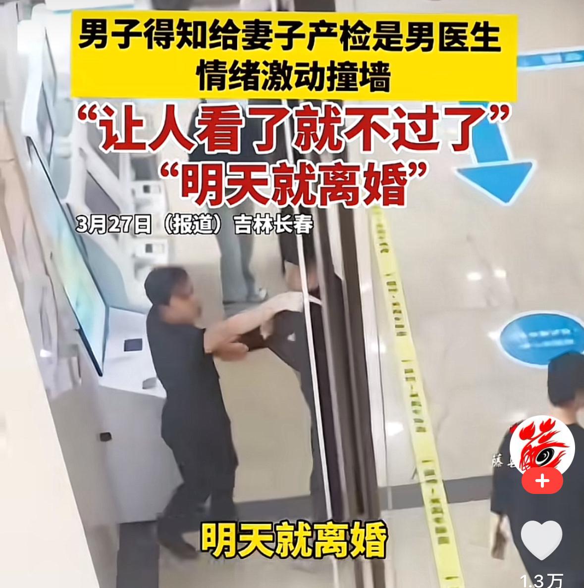 这真是贞洁烈男!吉林一男子,得知给妻子产检的是位男医生。瞬间暴跳如雷,大喊“你要是让他看了,就不过了,离婚”。一旁围观的男性劝他不要这么小心眼,男子情绪却更加失控,一边大吼“必须小心眼”,一边冲向医院的墙壁,用头撞击。 都说,在医生眼里,没有性别,只有病人这一个身份。 可是,在吉林长春的某家医院内,却发生了极其荒诞的一幕。 男子原本和妻子沉浸在迎接新生命的喜悦中,老话讲,家里添丁进口,就是添福添财。 自打妻子怀孕起,每次产检,男子几乎都陪同着,他很享受跟妻子一起见证孕育生命的伟大和奇妙。 可没想到,这次产检,却给他添了堵,也让妻子很难堪。 当时,两人一起坐在B超室门口等待,没一会儿,男子发现B超室里是位男医生。 男子的情绪立马不对了,把妻子拉到一旁说:产科检查室的大夫怎么会是男的呢?那你一会儿岂不会被看光,一点隐私都没有。 妻子解释说:在医生眼里,没有性别,只有病人,你的心思能不这么狭隘吗?你只要不乱想,就没有那么多事儿。 男子一听妻子的话,情绪更加激动,要求妻子立马换个大夫,哪怕今天的检查不做了,也不能让男医生看了。 妻子解释说,这个检查好几个月前就约好了,因为这个检查不好做,耗费时间长,而且只能在指定的孕周数内做,过了这个孕周数,就做不了了。 男子不听妻子解释,妻子见男子一意孤行,也懒得搭理,独自一人前往B超室门口等待。 结果,妻子还没走几步,男子在医院走廊疯了一样大喊:你要是让他看了,咱俩就不过了,就离婚。 一旁围观的、陪妻子产检的男性同胞,看不下去了,上前劝阻到:别那么小心眼,要以大局为重,要以妻子和宝宝的健康为重。 结果,同胞的劝阻根本没用,反倒更加激怒男子的情绪。 他暴跳如雷,撕心裂肺地吼叫:我就是要小心眼。 谁也没想到,他竟然直接冲向墙壁,用头部猛撞。 幸好周围的人给拦住了。 妻子见状,也吓了一跳,赶紧跑来劝丈夫,说不做了,不做了还不行吗?听你的还不行吗? 对于男子的做法,网友的评论也是褒贬不一。 有人斥责男子,说这都什么年代了,还裹小脚思想呢,妻子和宝宝平安才是最重要的。 还有人理解男子说,虽然在医生眼里,不分性别,可在病人眼里是分性别的,医院没有权力剥夺病人的选择。 另外,也有人分享她生产时的囧境说,男医生接生她都能理解,结果当天还带进来一堆实习生围观她生产,她当时既尴尬又窘迫,心理都留下阴影了。 《民法典》第1032条和《医师法》第23条同时规定:男医生检查需有女护士陪同、拉帘遮挡、仅暴露必要部位,医院必须保障隐私。 另外,孕妇本人也有自主选择权,如果觉得男医生不妥当,可以要求医院更换医生,但是丈夫没有权力替孕妇本人做选择。 该案例中,男子的行为确实过激,解决这个问题的方式有很多种。 比如,他可以心平气和的与妻子沟通,说明自己的想法,然后再定夺,而不是情绪激动的要求妻子更换大夫,孕妇的情绪本来就很敏感。 另外,他也可以去找医院沟通,说明介意男大夫,要求更换为女大夫,这也是合理合法的。 可他却采取了极端方式,不仅伤害了夫妻感情,还扰乱了公共秩序。 对此,你怎么看!
