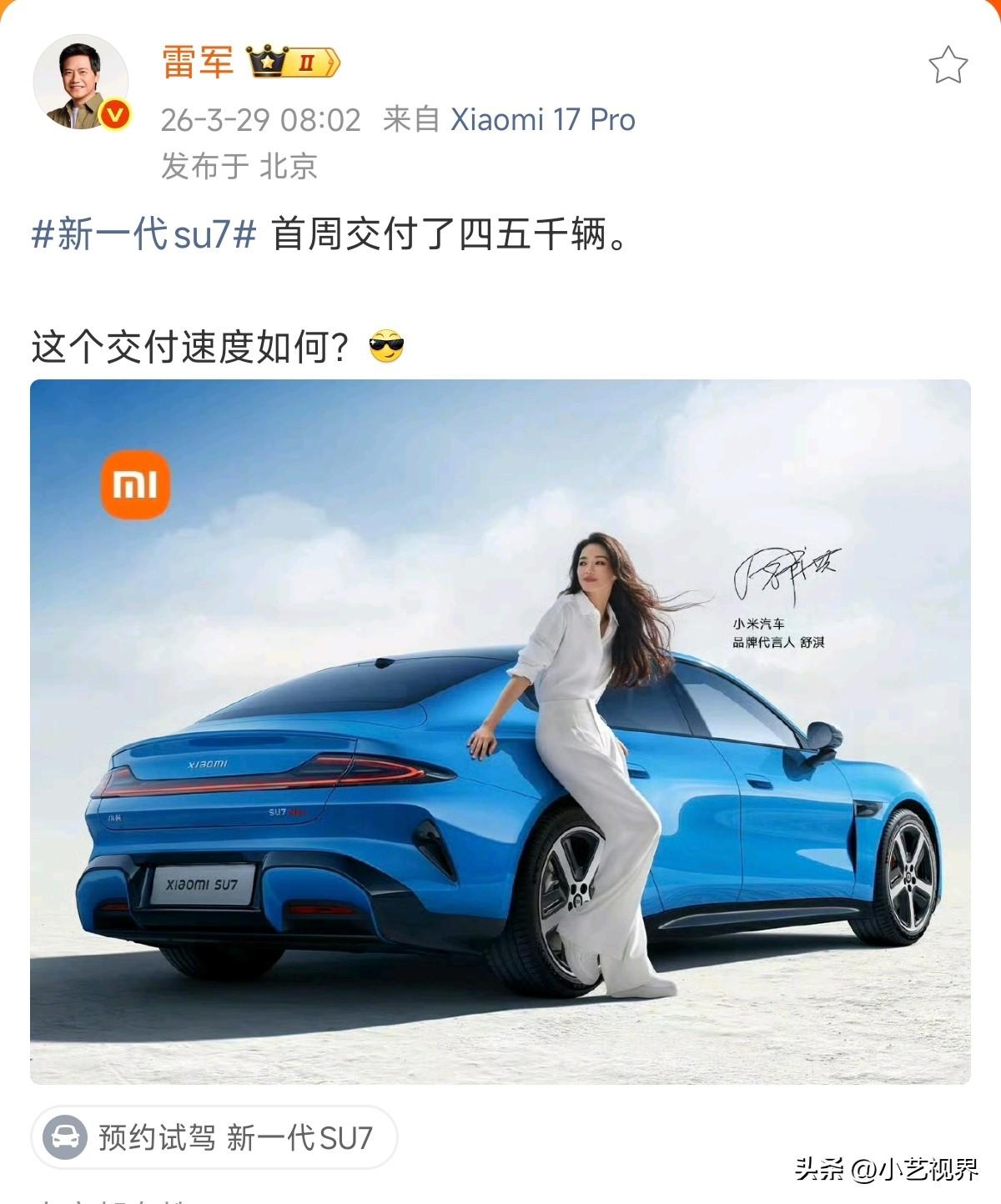 新一代SU7首周交付破4000? 雷军:今天是最后一天,能够突破5000就看今晚了。 如果说两年前的小米横空出世,一鸣惊人,那么两年后的今天,小米已经有了晒得大厂的底蕴与气势。 底蕴从哪里来?从纽北赛道来,从国内各大赛道来,从24小时耐力赛来,从自建工厂来,从直播拆车来,从全国大规模路测来…… 遵循造车百年路线,终究能够换来用户的信赖与认可。