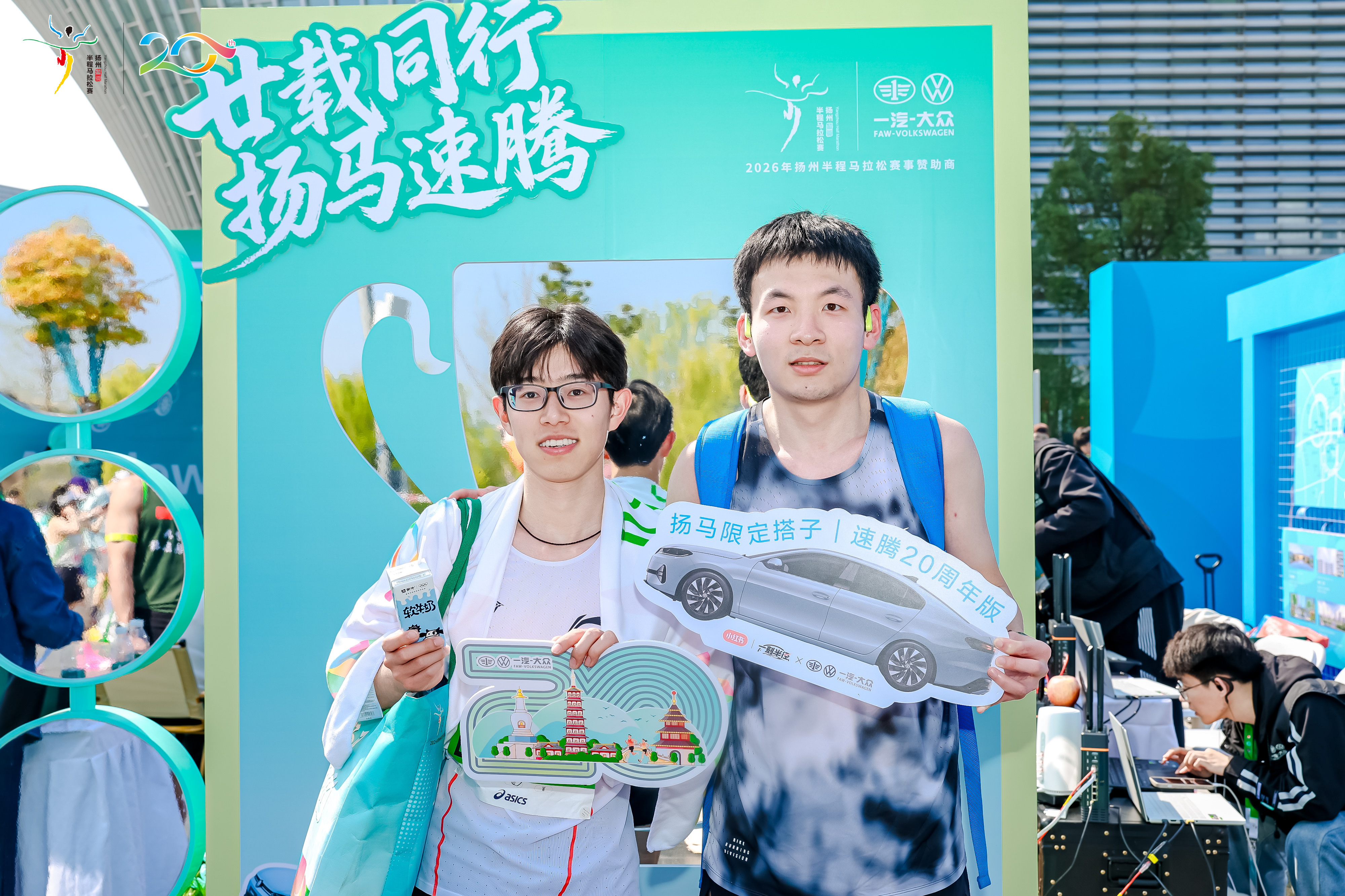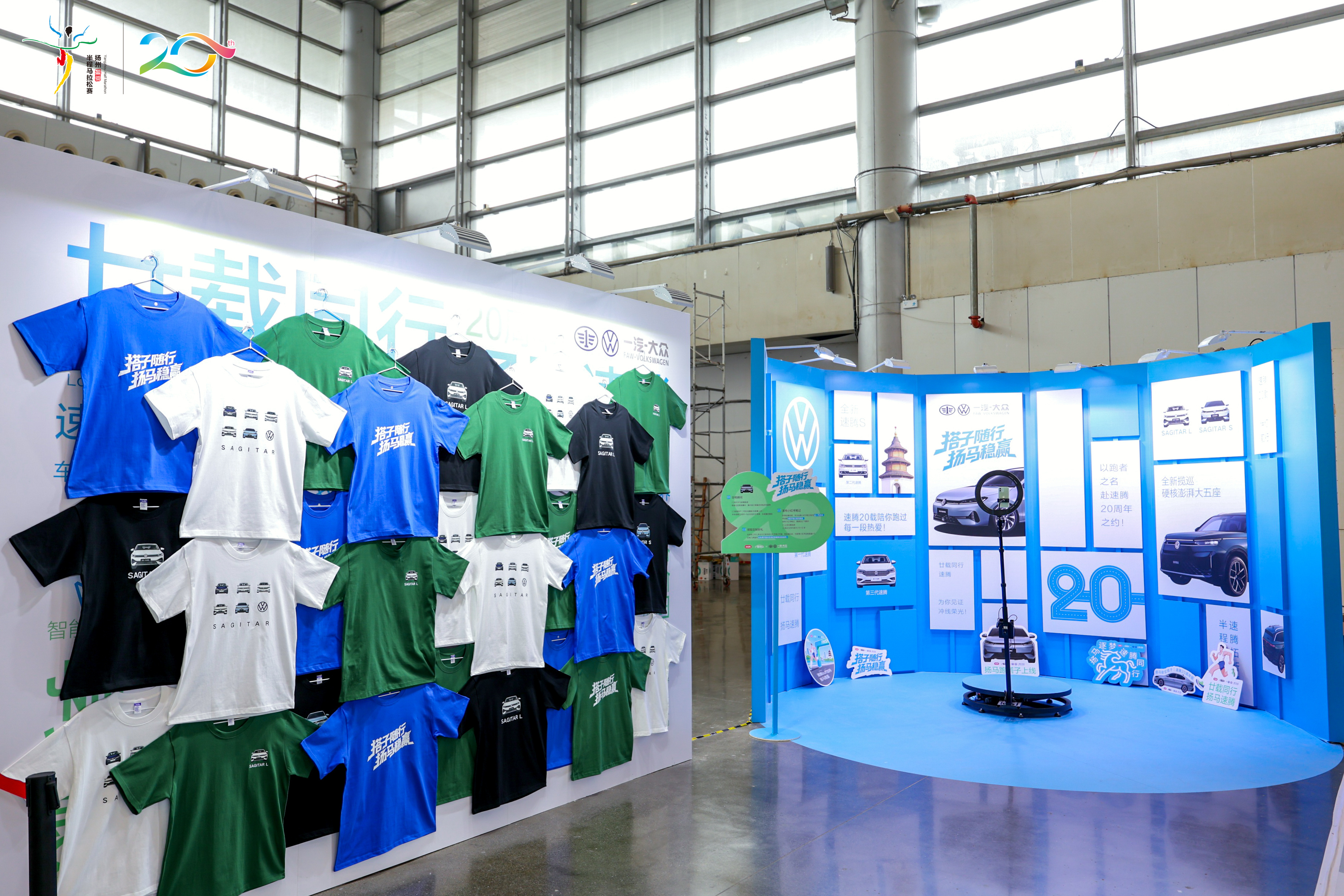 起跑区有速腾S领跑开道,赛道旁每1-2公里就有励志广告牌隔空打call,元气加油站的加油声更是一路推着人往前冲。公里牌啦啦队化身时光信使,把速腾和扬马的20年里程碑藏进每一段路程,跑马的同时还解锁了双20的成长故事。马博会上的巨物装置、拍照打卡区更是出片神器,定制T恤和联名金句满满都是惊喜。