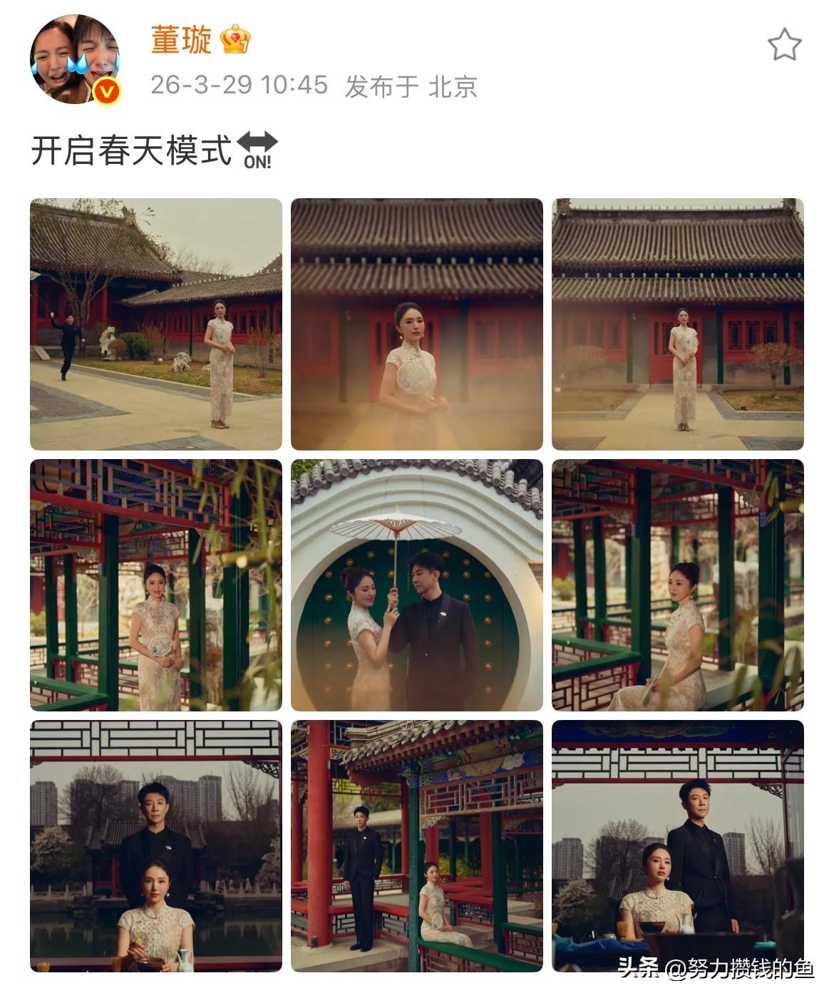 董璇,高调秀恩爱; 3月29日,董璇在社交平台更新了一组照片,这次不是女儿小酒窝,而是和老公张维伊的合照; 照片中,董璇穿着修身的旗袍,整个人漂亮又精致,张维伊也是黑色的西服,头发剪短了,比之前在节目中,看着清爽帅气了些; 董璇配文说:开启春天模式🔛 网友们看到后,纷纷留言: 哇塞 这组真的绝绝子,姐姐身材太好了 春日氛围感拉满,姐姐的美貌真是四季常青 喜欢这种古典韵味,真的是太美了 当初节目中,最不被看好的两人,依然幸福的在一起,祝福两人;