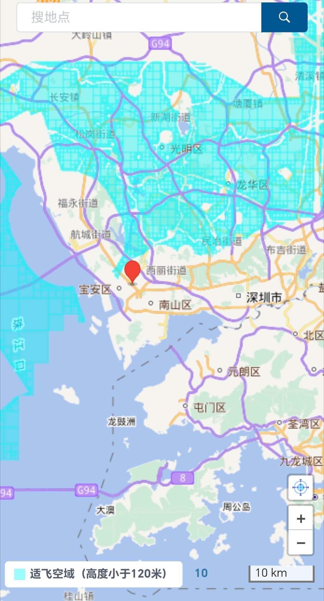 就是在地图白色区域,都是要报备才能飞。蓝色区域120米以下,是不需要报备的。在深圳市区,都属于白色区域,要宝报备