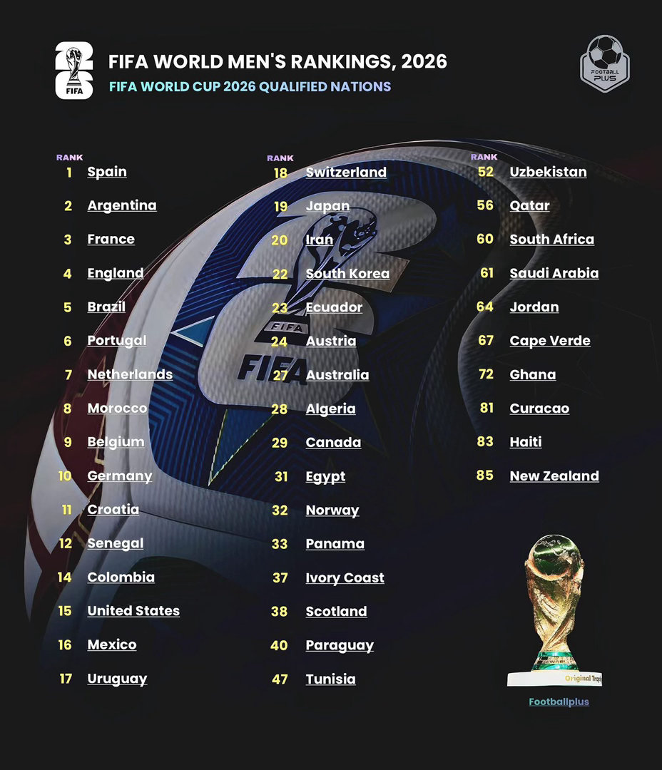 已經進入世界盃嘅國家隊世界排名📊FIFARanking2026FIFAW