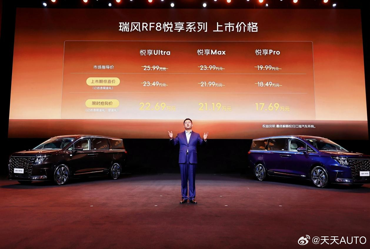 从定义中国MPV品类到成为智能电混MPV的先行者,瑞风品牌25年来始终与用户同行。瑞风RF8悦享系列,是瑞风写给百万用户的“家书”,更是对“以用户为中心”理念的极致践行。站在25周年的新起点,瑞风将继续深耕MPV赛道,以技术创新驱动品牌向上,让每一次出发,都成为悦享幸福的美好旅途。