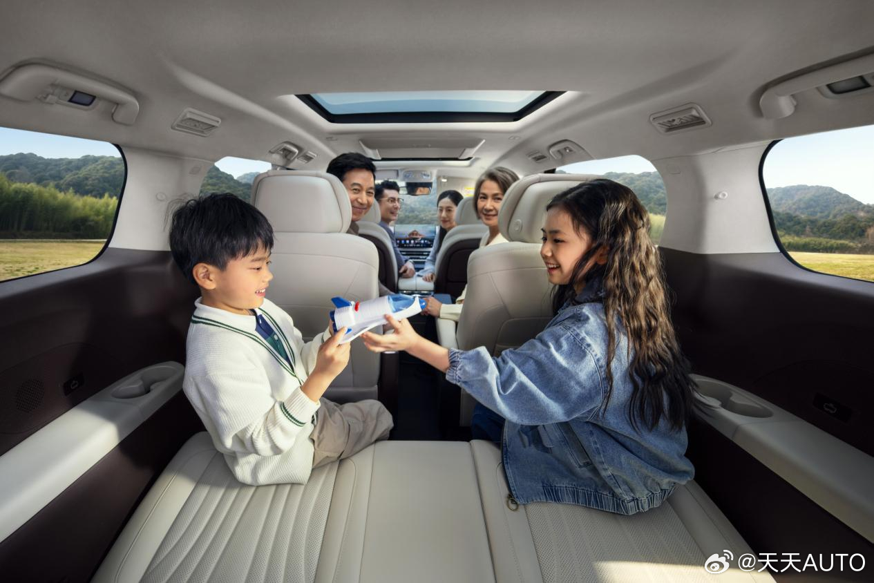 全车93处声学包+5块双层隔音玻璃、米其林静音轮胎等,怠速噪音低于图书馆标准,120km/h时速下后排交谈依然清晰,关上车门,就是另一个世界。17.3英寸高清吸顶屏,后排秒变家庭影院;智能冷暖冰箱(-6℃~50℃),夏天冰镇饮料,冬天保温热饮;400mm超低地台(比同级低50mm)、549mm两级长扶手,老人、孩子甚至穿裙装的女士都能从容上下车。