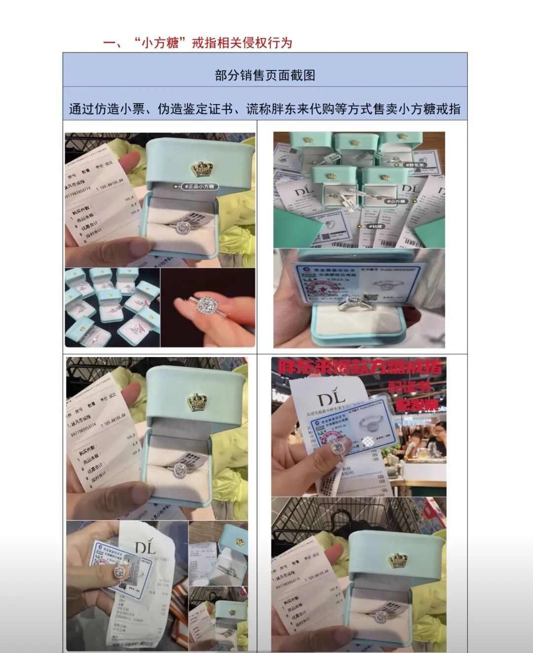 【#胖东来曝光小方糖戒指仿冒乱象#】 #胖东来从未授权代购卖小方糖戒指#3月29日,河南胖东来商贸集团发布第八期侵权行为曝光公告,提到网络平台上针对旗下热门商品“小方糖”戒指的仿冒侵权行为。据公告披露,部分商家在电商平台及社交渠道发布商品时,刻意搭配伪造的胖东来购物小票、品牌鉴定证书,将仿冒“小方糖”戒指包装为“胖东来正品代购”商品。这些伪造凭证完整复刻了胖东来购物小票格式、品牌标识及鉴定证书样式,极具迷惑性,导致不少消费者误以为购买到官方正品,实则为低成本仿冒品。