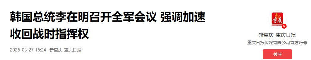 李在明对美喊话!   事情起因在今年3月初。美军连招呼都没打透,直接把星州基地的“萨德”装备抽调到中东。6台发射车和大量拦截导弹被堂而皇之运走。   原因很简单,美军在中东跟伊朗死磕,拦截弹不够用了。   李在明在3月10日无奈承认,韩国政府表示反对,但根本拦不住。这简直是把韩国脸面按在地上摩擦。从2016年部署“萨德”起,韩国赌上国运,中韩关系遇冷,经济损失惨重。   韩国替美国白扛9年雷。在美军眼里,韩国根本不是盟友,充其量就是个大型军火库。美国利益永远排第一。只要中东有需要,韩国的安全随时可以被当成垫脚石一脚踢开。   这种用完即丢的屈辱感,彻底刺痛韩国社会。3月27日,李在明在全军主要指挥官会议上发飙。他下达死命令要求韩军加强自主国防,并直言不讳地提出,要尽快推进收回战时作战指挥权。   李在明逻辑非常清醒。他深知过度依赖美军就是死路一条,韩国如果不把安全主权攥在手里,早晚会被美国榨干。防卫不能再靠别人,只有自己才最可靠。   拿回指挥权不仅为争口气,更为保命。只要指挥权在美国手里,韩国就只能无条件服从美国的印太战略。美国想在东北亚挑事,韩国就得当炮灰。李在明想通过夺权避免卷入大国冲突。   军事上极度不安全,经济上更是火烧眉毛。美国在中东点火导致霍尔木兹海峡航运受阻,直接掐住韩国能源脖子。韩国70%的石油和20%的天然气全靠中东进口,危机一触即发。   能源短缺让韩国社会陷入混乱。政府被迫开启应急模式,公务车尾号限行,全民勒紧裤腰带节能,市面甚至出现疯抢垃圾袋的荒唐景象。盲目追随美国政策,最终买单的却是韩国老百姓。   内外交困下,韩国想找后悔药吃。但美国人会轻易放手吗?答案显然是否定的。战时指挥权是美国控制东北亚的命门。一旦把权力交还,美国在东亚的军事干预能力就会大打折扣。   回顾历史发现,美国人玩拖字诀轻车熟路。当年卢武铉和文在寅政府都曾拼尽全力想收回指挥权。结果美国人总能找到借口,要么说韩军能力不达标,要么拿半岛威胁说事,无限期往后推延。   现在美国政府只会把戏演得更精。他们继续吊着,给口头希望让韩国卖力。实际操作中绝对会设重重门槛把移交进程卡死。   失去防空洞的韩国喊得越凶,美国套在脖子上的锁链收得越紧。