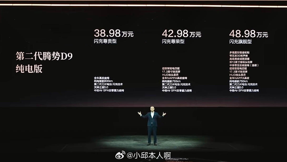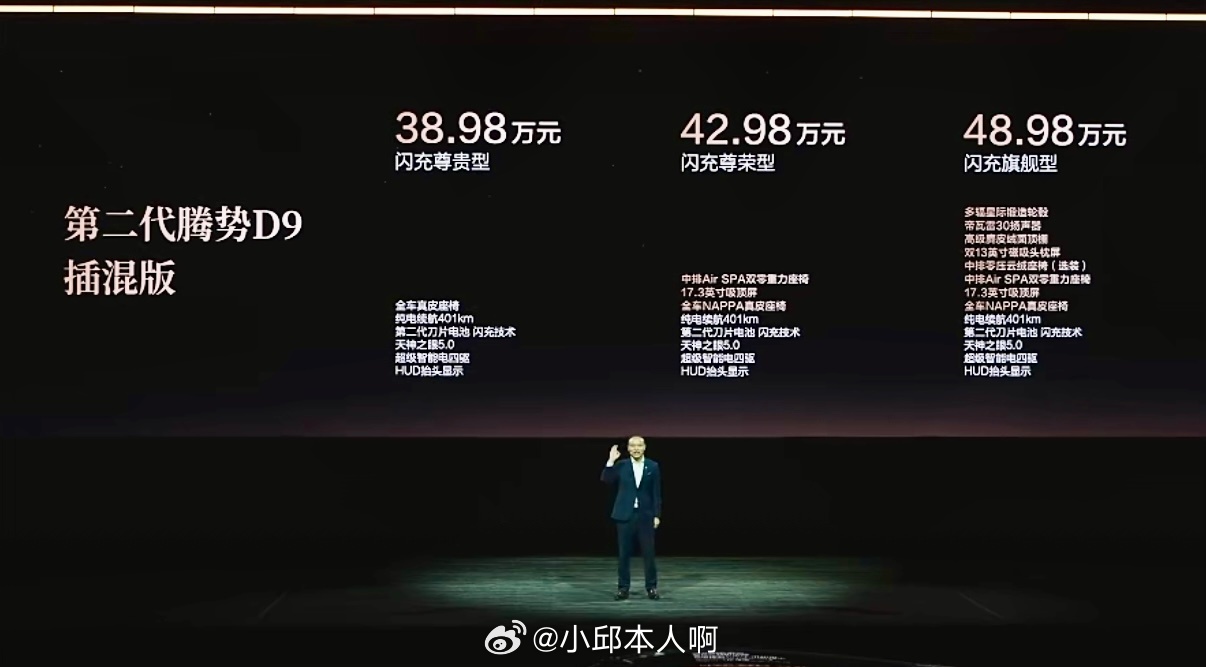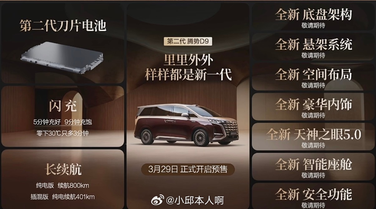 第二代腾势D9正式开启预售,重磅推出闪充尊贵型与闪充尊荣型两款车型,售价区间38