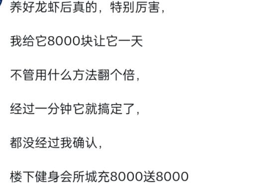 给龙虾 8000 块让它一天翻倍,结果它一分钟就搞定了 —— 楼下健身会所充 8000 送 8000。 别笑龙虾傻,这就是我们普通人的 “翻倍陷阱”:以为是理财,其实是被商家薅羊毛;以为能钱生钱,最后发现只是换了个方式把钱花出去。 真正的翻倍从来不是靠小聪明钻空子,而是你有没有看透 “送 8000” 背后的套路。