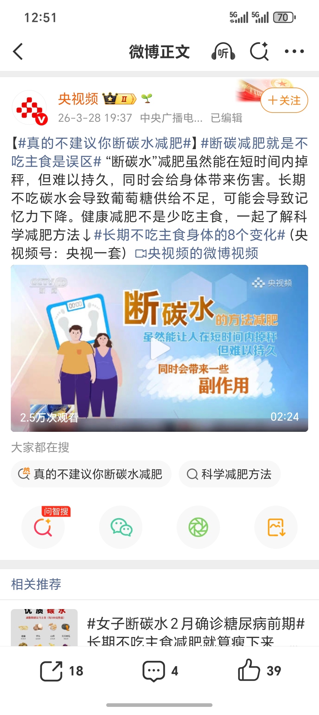 断碳水短期掉秤快,但长期身体会抗议——掉头发、没力气、情绪暴躁。