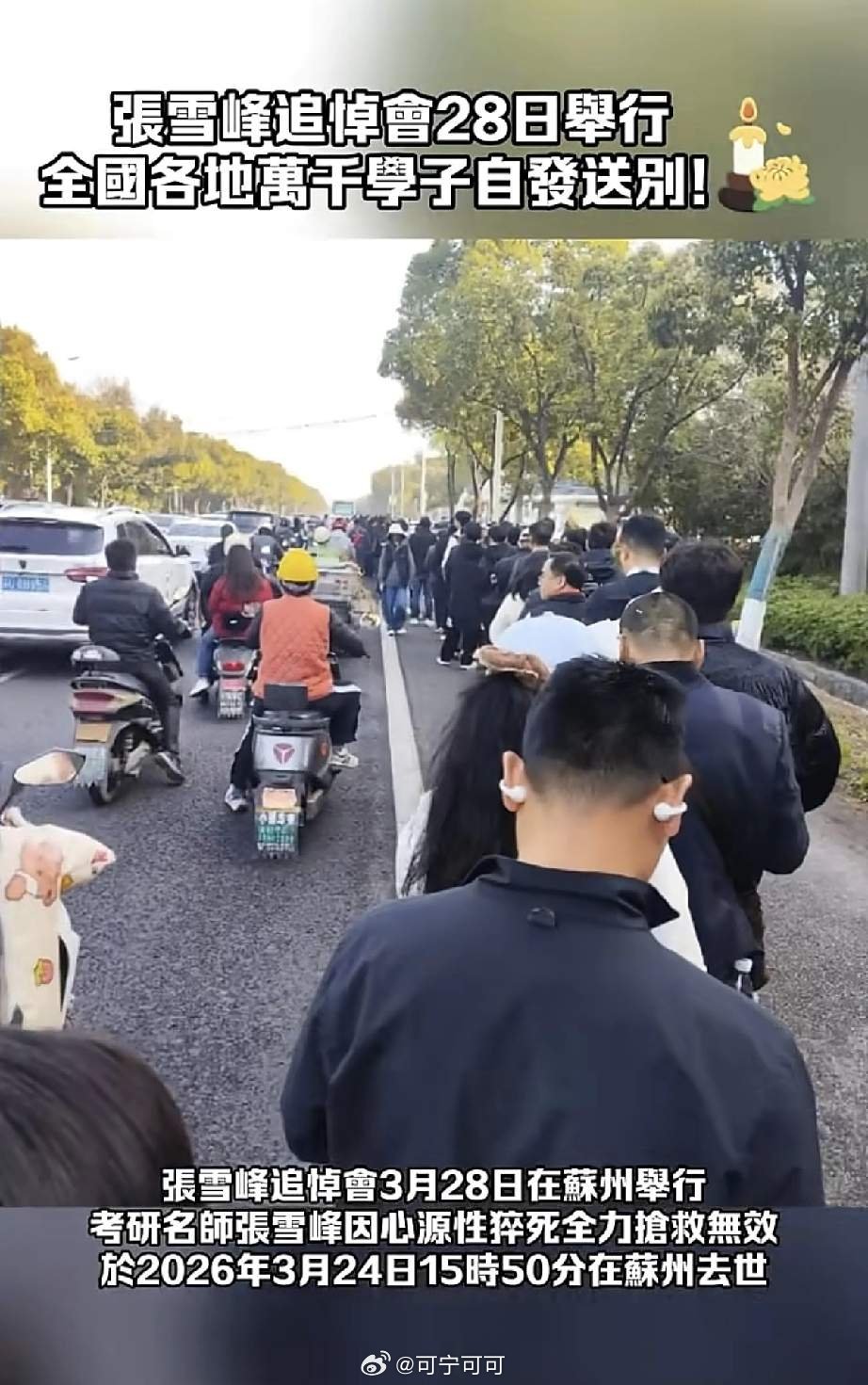 张雪峰老师的追悼会28号低调举行,家属此前一再叮嘱:丧事从简,不接受专程吊唁,不设公众悼念环节,也谢绝鲜花和花圈。可即便如此,依然挡不住无数人默默的送别。没有喧闹的场面,没有拥挤的人群,更多人选择用最安静的方式寄托哀思。有人在远方写下祝福,有人默默点一支蜡烛,有人通过外卖送去一束花,有人在心里轻声说一句感谢。他曾用最直白的话,点醒无数迷茫的学生和家庭;用最接地气的方式,把志愿、专业、人生选择讲得透彻清醒。很多人说,因为他少走了很多弯路,因为他看清了很多现实。这一程,他用力地活过、真诚地说过、热烈地帮过许多素不相识的人。不必喧哗,不必聚集,真正的送别,从来都在心里。一路走好,愿另一个世界,也有人如你一般,清醒、温柔、又勇敢。
