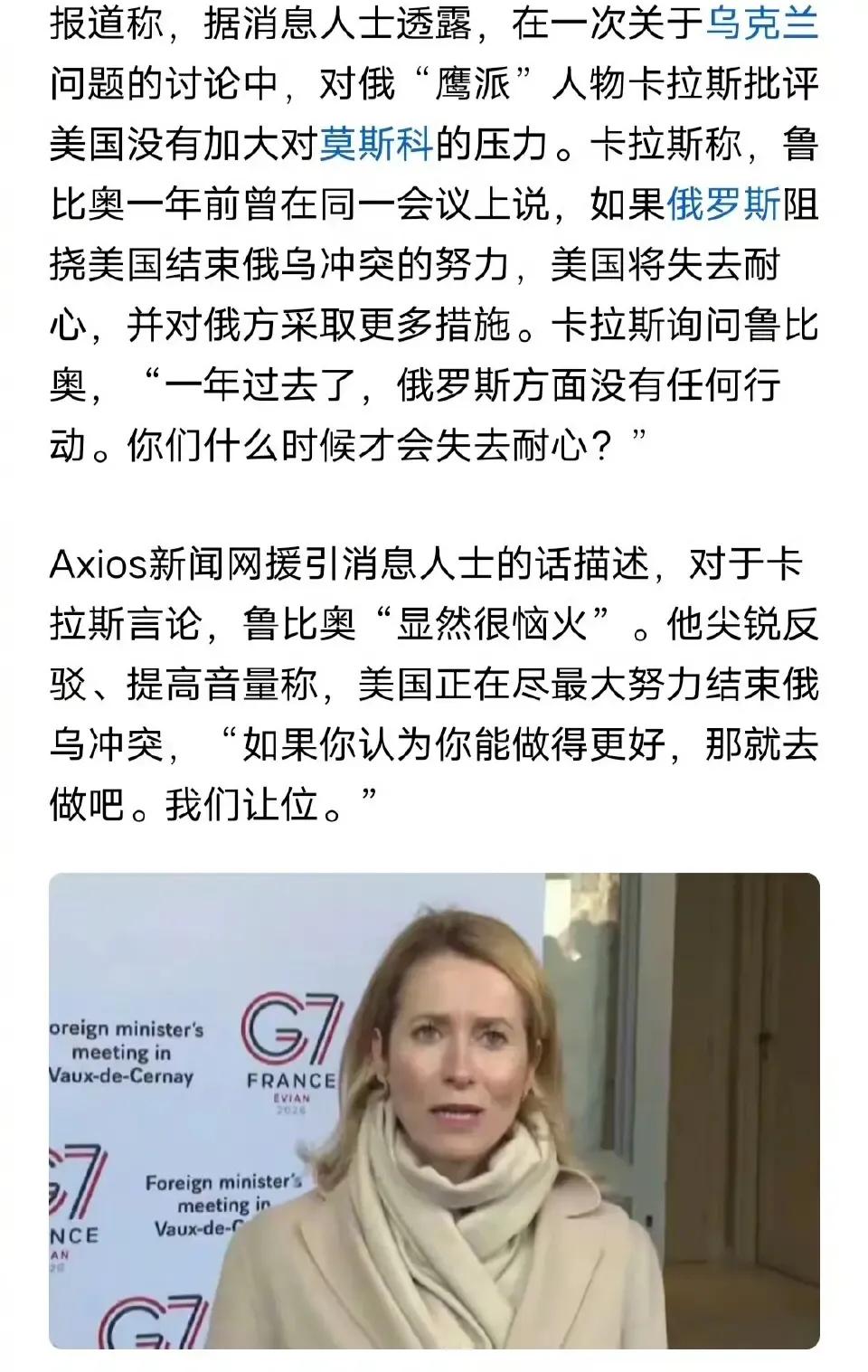 “你行你上”,这是G7峰会上鲁比奥与欧盟外长卡拉斯激烈交锋中的一句话,显然卡拉斯没有摆正自己的位置,更没有弄清楚在欧盟与美国之间的真正主仆关系。 卡拉斯本想在G7会上对鲁比奥发难,当着在场人员“羞辱”一下鲁比奥,但是她颠倒了美国与欧盟的主仆关系,更没真正弄明白美欧双方谁才是真正的游戏规则制定者,所以才出现卡拉斯责怪在先,鲁比奥愤怒回击在后的尴尬境地。 不得不说卡拉斯的嘴根本没有把门的,而且严重缺乏对历史的理解认知,更缺少现在世界格局中的前瞻性,她既反中又反俄,然而她并不受美国待见,不知一个依赖美国人安全保护、政治与外交决策又依附于美国的欧盟为什么这么理直气壮。