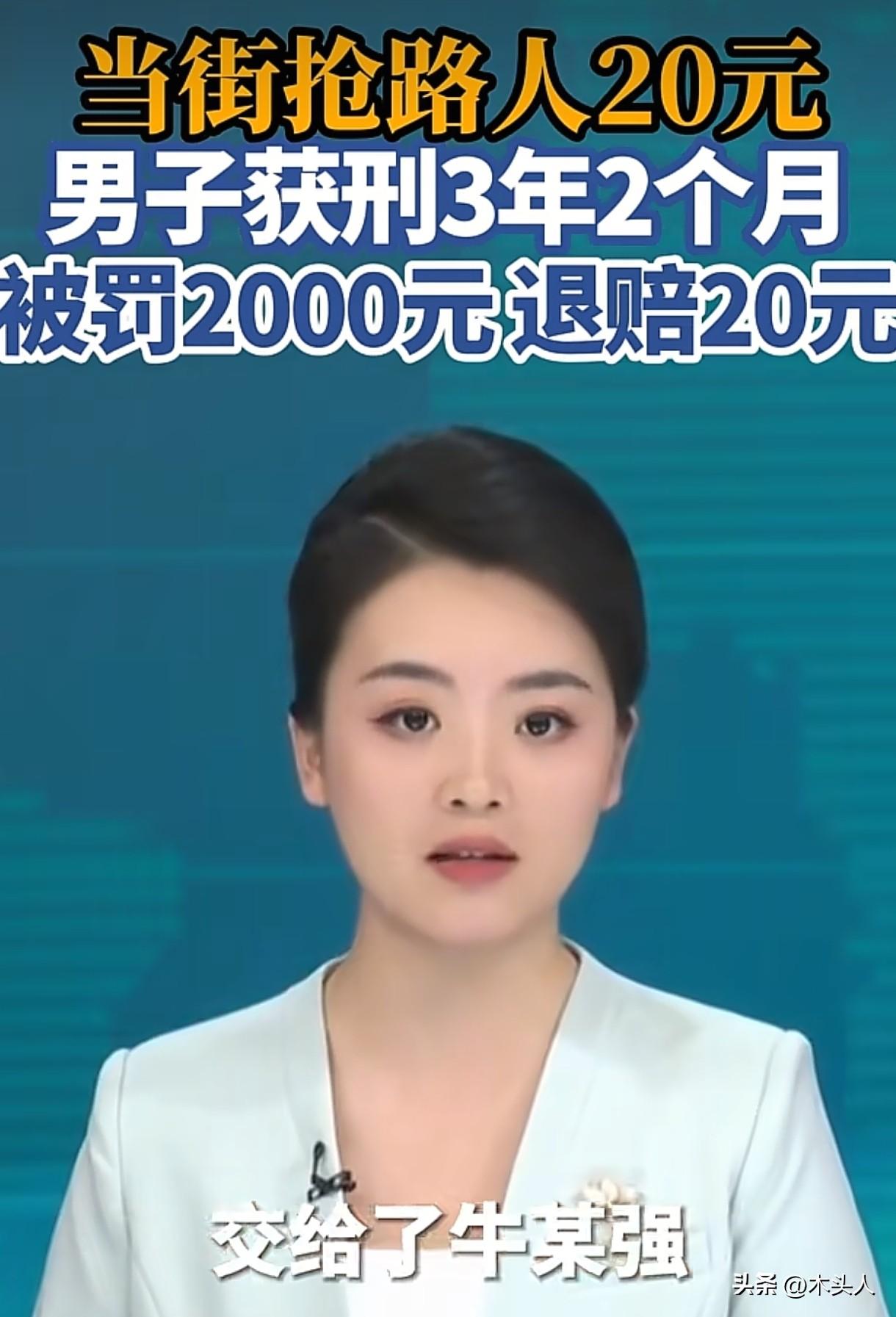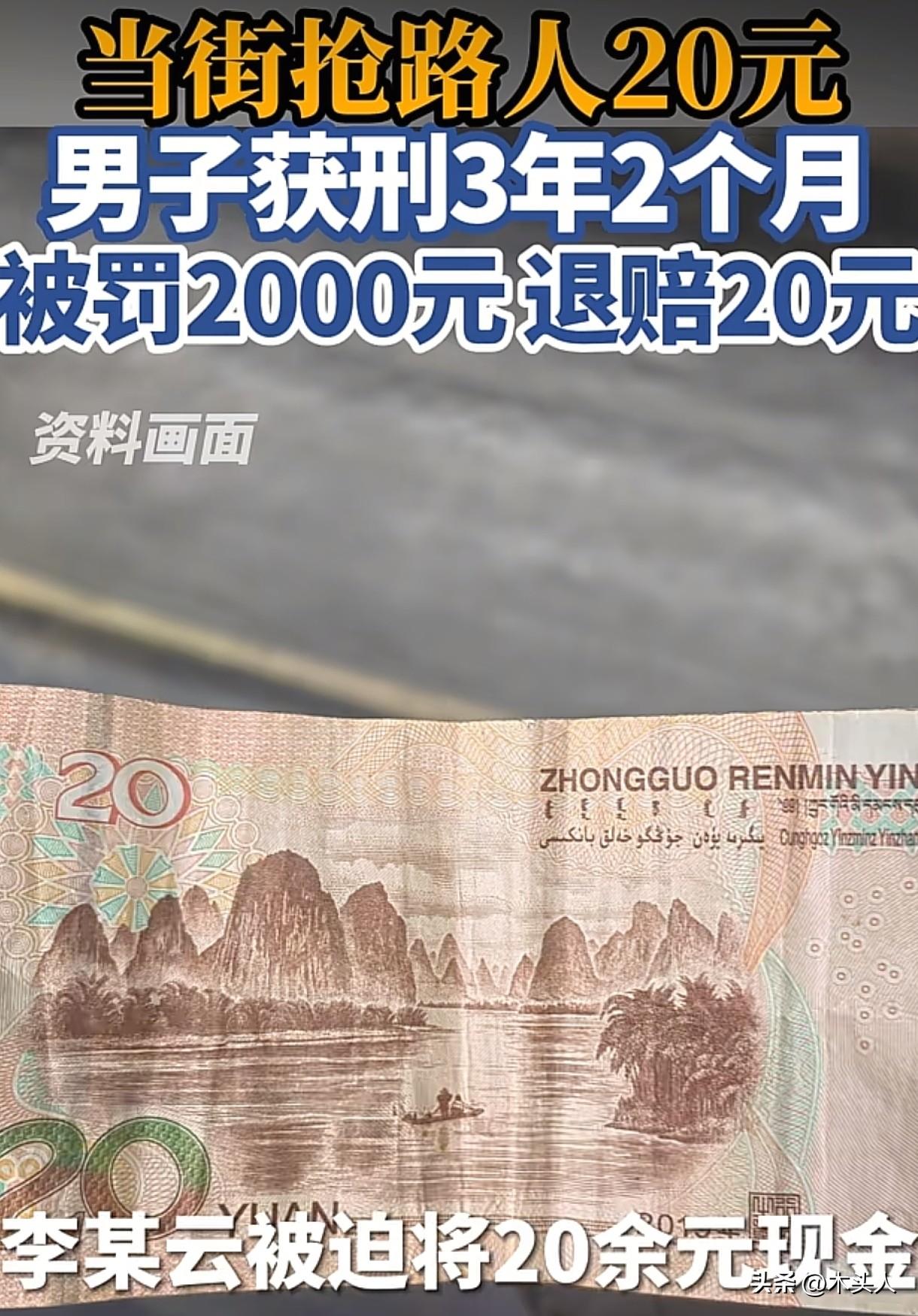 “悲剧了!”四川攀枝花,男子和家人吵架后,离家出走,流落街头,身上也没什么钱,于是当街抢走路人20元,获刑3年2个月,并处罚金2000元,还需要将20元退赔给路人。网友:一点都不冤,就算抢1毛线,也是3年起步,这是重罪。 事情发生在2025年3月26日晚,天气乍冷还寒,牛某和家人大吵一架后,气冲冲的摔门而去。 到了寒冷的街头,他却不知道自己该去哪里了,自己身上没什么钱,住不了酒店,但是他又不想回家面对家人的指责,只能漫无目的的在街头游荡。 夜色越来越晚,路上的行人也越来越少,牛某坐在人行道旁的大石头上,突然心生歹意,一个可怕的念头在他脑海中滋生:“只要找人抢一点钱,自己就能解决眼前的难关。” 晚上11点多,他看到一个独行的女子出现在马路对面,朝着他的方向走来,对方独自一人,毫无防备。 牛某心跳加速,待对方路过自己面前时,他突然起身,从后面用胳膊勒住了女子的脖子,并将对方从小路拖拽到了无人的小广场。 到了小广场,牛某一只手勒住女子的脖子,一只手去翻女子的挎包。 女子被吓得脸色苍白,自己出门基本都用手机,压根没带什么现金,为了不被牛某伤害,她将自己包里的20多元现金给了牛某。 看到有人经过,女子大声呼救,并奋力挣脱,向路人跑去,待自己安全后,女子报了警。 事后,牛某后悔莫及,如实供述了自己的罪行。 牛某虽然只抢得20多元现金,但是他的行为构成了抢劫罪。 抢劫罪是指以非法占有为目的,对财物的所有人、保管人当场使用暴力、胁迫或其他方法,强行将公私财物抢走的行为。 抢劫罪是行为犯,只要实施抢劫行为,即构成犯罪。 刑法对构成抢劫罪没有规定数额、情节方面的限制,无论是否抢到钱财,也不论实际抢到钱财的多少,原则上都构成抢劫罪。 牛某因和家人发生争执,有家不回,身上又没钱,于是萌生了抢劫的想法,并对路人实施了抢劫,抢走对方20余元现金,其行为已经构成了抢劫罪。 《刑法》第236条的规定:以暴力、胁迫或者其他方法抢劫公私财物的,处三年以上十年以下有期徒刑,并处罚金。 也就是说,无论是否抢得财物,只要实施了抢劫的行为,刑罚都是3年起步。 在这个案件中,牛某之前就有犯罪前科,依法应从重处罚,但是他到案后,如实供述罪行,可以从轻处罚。 《刑法》第67条第3款规定:犯罪嫌疑人如实供述自己罪行的,可以从轻处罚。 最终,法院判决牛某犯抢劫罪,判处其有期徒刑3年2个月,并处罚金2000元,同时责令牛某退赔20元给受害人。 有人说,抢20元,判3年2个月,是不是太重了? 抢劫罪是重罪,它的核心在于通过暴力、胁迫等手段压制被害人反抗,强行夺取财物。 这种行为不仅侵犯了他人的财产所有权,还严重威胁了他人的人身安全,性质非常恶劣,因此刑法未设置数额门槛,抢劫数额仅作为量刑参考,而非定罪依据。 抢20元与抢20万元,基础刑相同,但后者可能因数额巨大从重处罚。 抢劫罪的危害性在于行为本身,而非财物价值。 即使只抢到1元钱,只要实施了暴力或胁迫行为,即构成抢劫罪既遂。 任何违法犯罪行为都是需要承担后果的,切勿因为金额小或者情有可原,就心存侥幸,以为没事的,只要犯罪,必会被抓。
