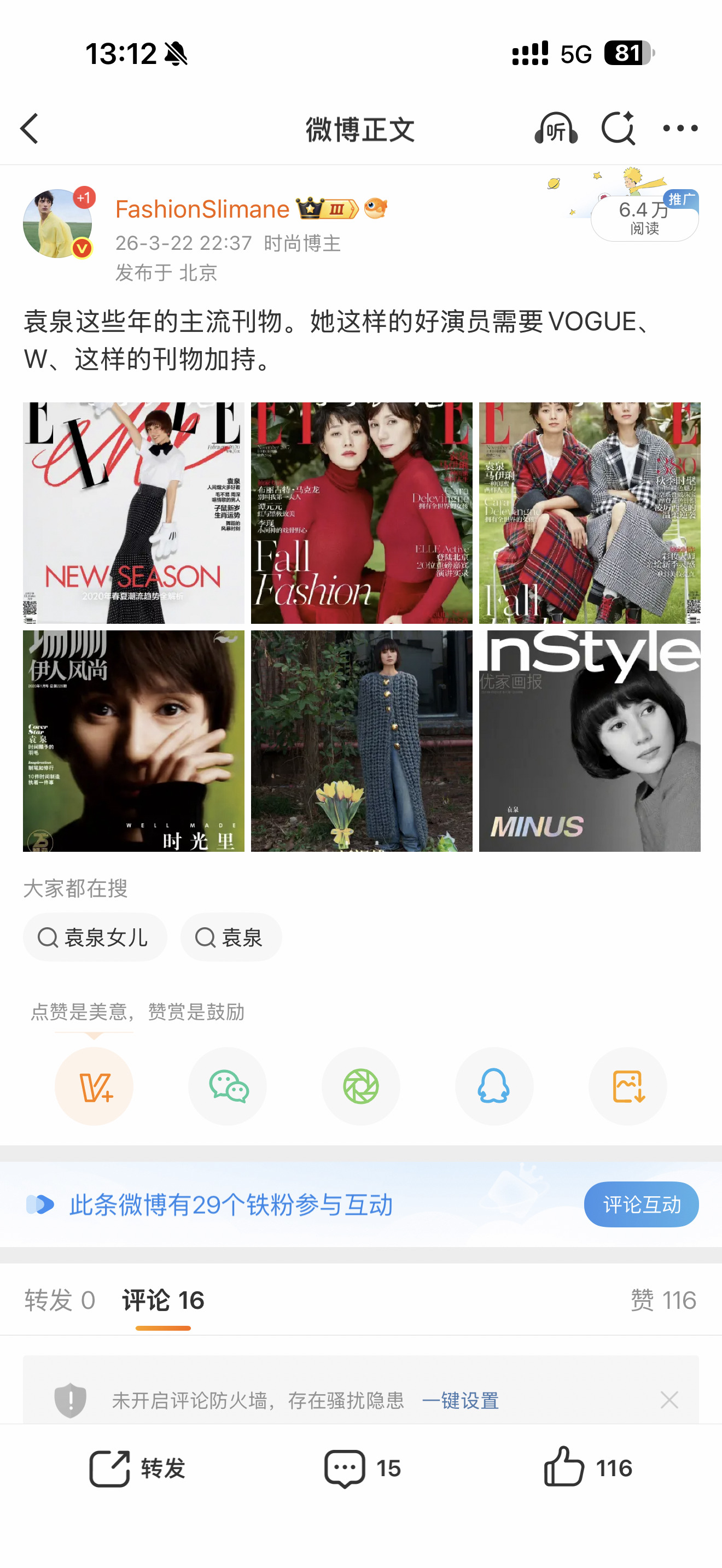袁泉老师登上 《上城士》新封面。 上周我刚看完《蜂蜜的针》就跟主编说了。 这么短的时间这个执行力和速度。 太厉害了。 尹超老师选的也对,拍的真好。