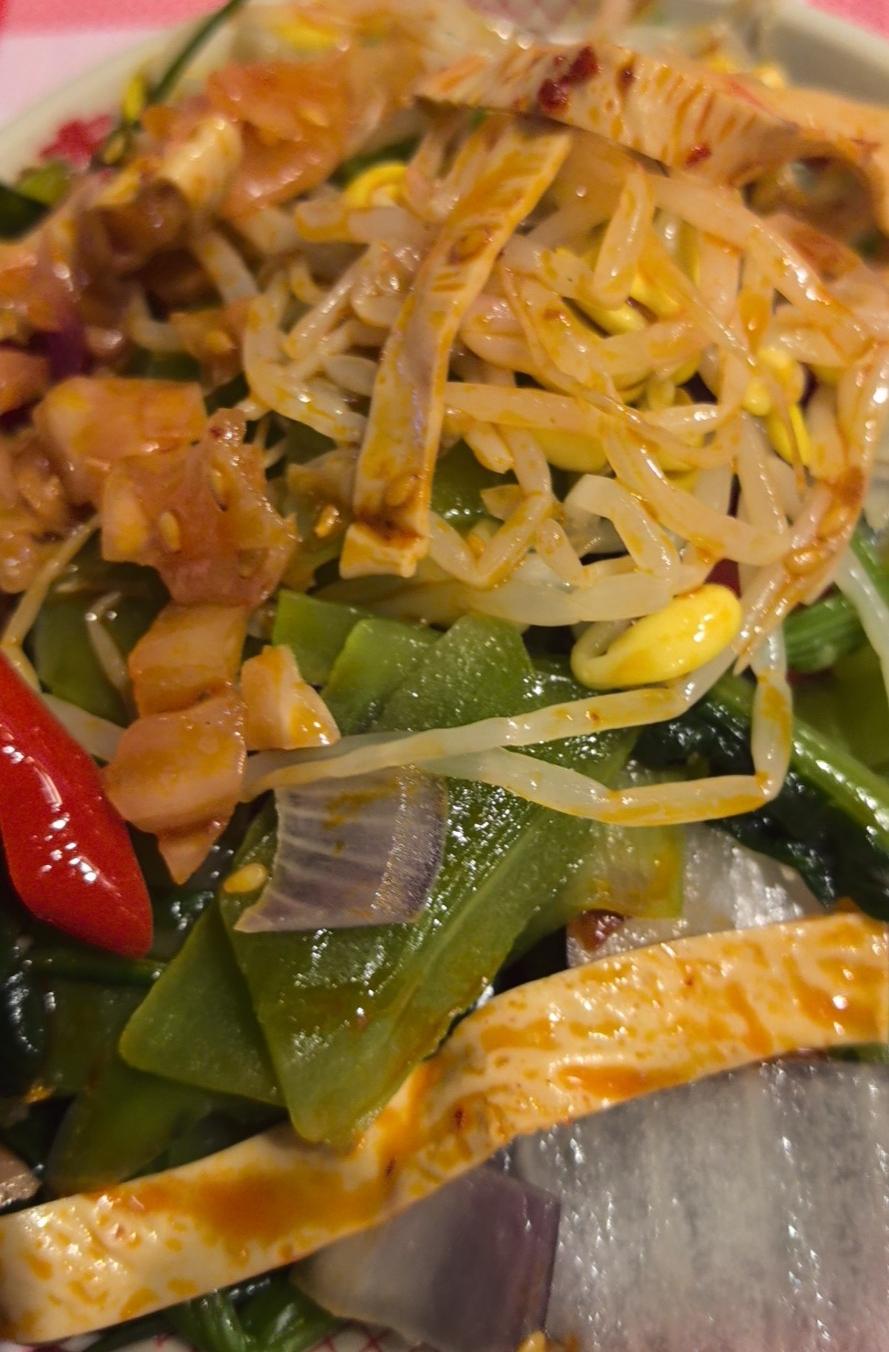 这个蹄花应该不是冻货。 老妈蹄花(半只)+小菜拼盘,米饭免费,小菜免费加,一共34元。蘸碟是灵魂。[笑] 成都吃饭还是很实惠的。[笑]
