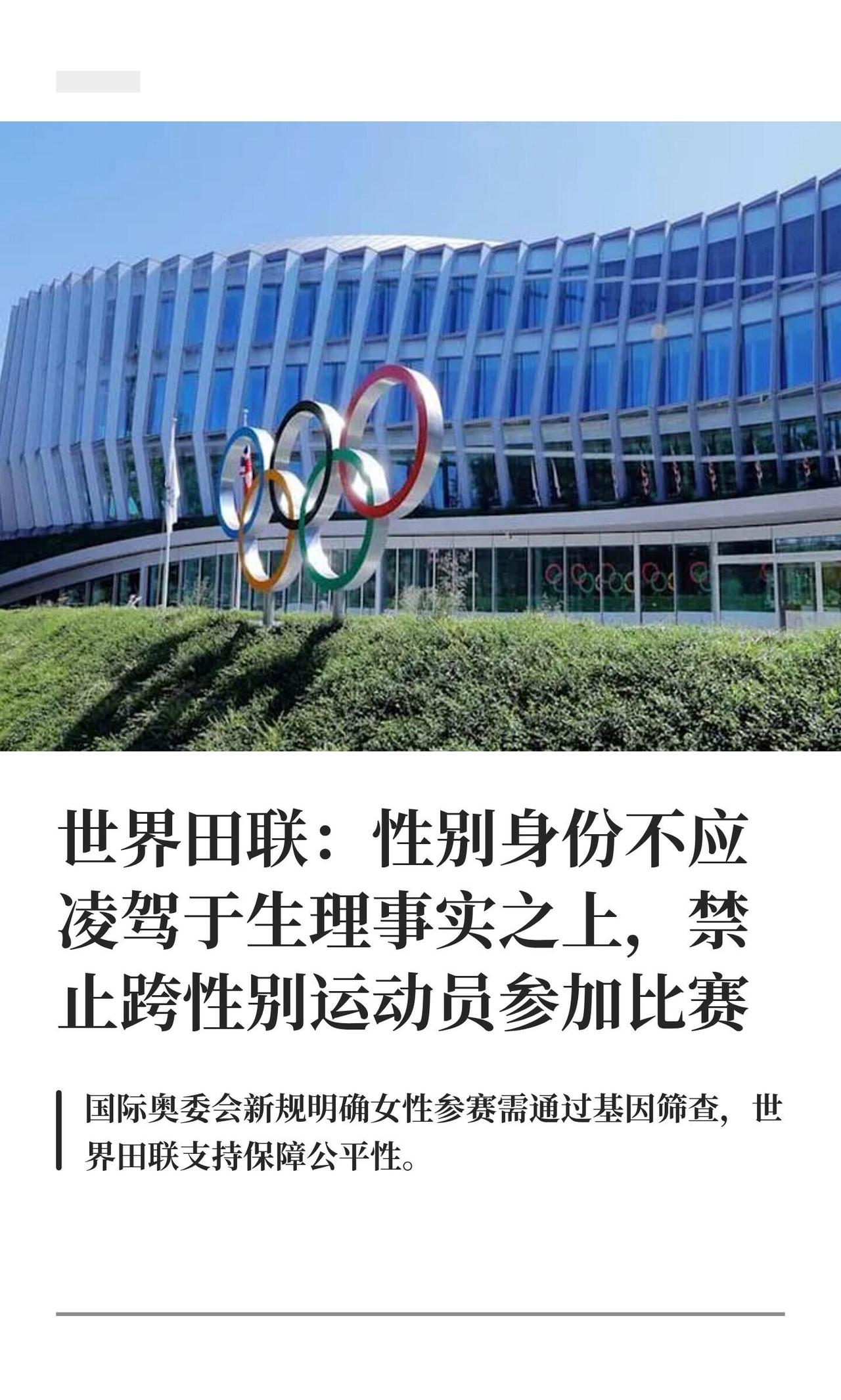 简单说,就是国际奥委会出了个硬规定:以后奥运会女子项目,只允许“生理女性”参加。 规定核心:想以女性身份参赛,必须通过一次性SRY基因筛查,确认是“生理女性”才行。这个规定从2028年洛杉矶奥运会开始执行。 背景和原因:这个规定说白了,就是为了保证女子比赛的公平。因为从生物学上讲,男性在力量、速度等方面有先天优势。如果允许跨性别女性(出生为男性)参赛,对其他女运动员就不公平。世界田联那边就表态支持,说“性别身份不应凌驾于生理事实之上”,要保护女运动员的公平竞争环境,别搞出“生物学上的玻璃天花板”。 各协会要跟进:国际奥委会还说,各个项目的国际单项体育联合会(比如游泳、举重这些协会),还有各国奥委会,都得按照这个精神来制定和执行自己的参赛规则。算是定了个大方向。 田联一直很严:世界田联在保护女子比赛公平性上,一直是最严的之一。他们早就禁止跨性别运动员参加女子比赛。对于DSD运动员(性别发育差异,比如睾酮水平高的女运动员),也要求她们必须把睾酮水平降到很低,并且保持至少24个月,才能参加女子组。2025年东京世锦赛前,更是要求所有参加女子项目的运动员,都得做一次那个SRY基因检测。 简单总结:就是体育界在“公平”和“包容”之间,现在更偏向“公平”了。为了保护绝大多数女运动员的竞技公平,决定用最根本的生物学指标(基因)来划线。这事儿肯定有争议,但奥委会和世界田联算是把态度摆明了。