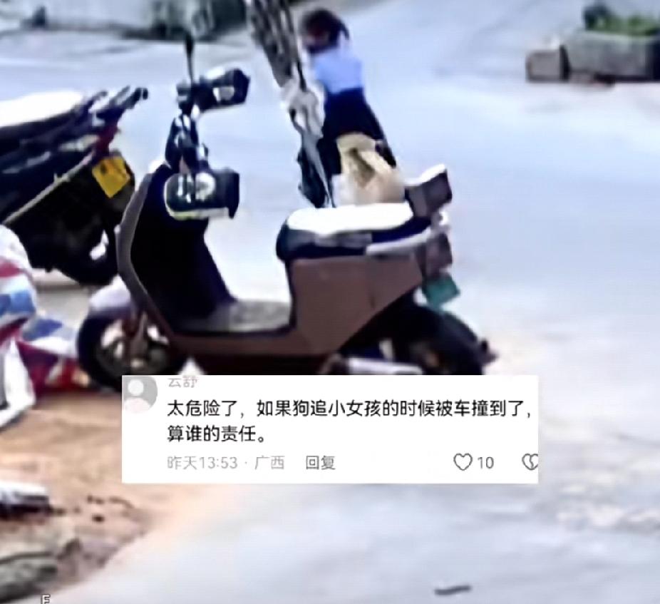 这种人不配养狗!女孩被狗追吓得尖叫大哭逃跑,女孩哭声还没停,狗主人骑车驮着小狗扬长而去! (信息来源:鞍山云客户端) 3月25日,福建一七八岁的小女孩在路上遇到一条狗。狗朝女孩叫了一声,女孩害怕极了,转头就跑。结果狗看女孩跑了,也追了上去。 女孩非常害怕,一边哭喊尖叫一边逃跑,狗也一直追着女孩。 原本以为是流浪狗,结果没想到这时一名黑衣女子骑着电瓶车停在了一旁,狗很自然的就跳上了电瓶车。 而惊魂未定的女孩还在害怕的大哭,黑衣女子就像没有看见也没有听见一样,驮着自家的狗就扬长而去了! 真的是太没有素质了,自己家的狗粮别人的孩子吓到了,不说积极承担责任,对孩子最起码的安慰和歉意都没有!真的是枉为人! 最后,大家一定要叮嘱孩子,遇到狗不要因为害怕慌忙逃窜,这样只会被狗狗当成猎物或者玩耍的对象,狗狗就会追着跑,更容易引发事故! 视频中的狗狗追着女孩,几次追上了女孩,但没有对女孩下嘴,说明狗狗没有咬人的意图。是女孩因为害怕而逃跑,才被狗狗追的,我小时候就有过这样的经历,不过我没有女孩那么幸运,那条追我的大黑狗在我屁股上咬了一口! 其次,一点责任心都没有的人真的不配养狗!强烈建议养狗也要考证! 狗追人