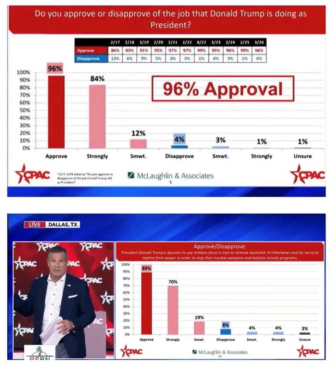 据保守政治行动会议(CPAC)进行的最新民调显示,如果2028年总统党内初选于今日举行,共和党选民有53%支持万斯,35%支持鲁比奥。 此外,有96%的受访者对特朗普作为总统的工作表现表示认可,89%的受访者支持特朗普用武力消灭哈梅内伊及其政权。 图片来源于网络
