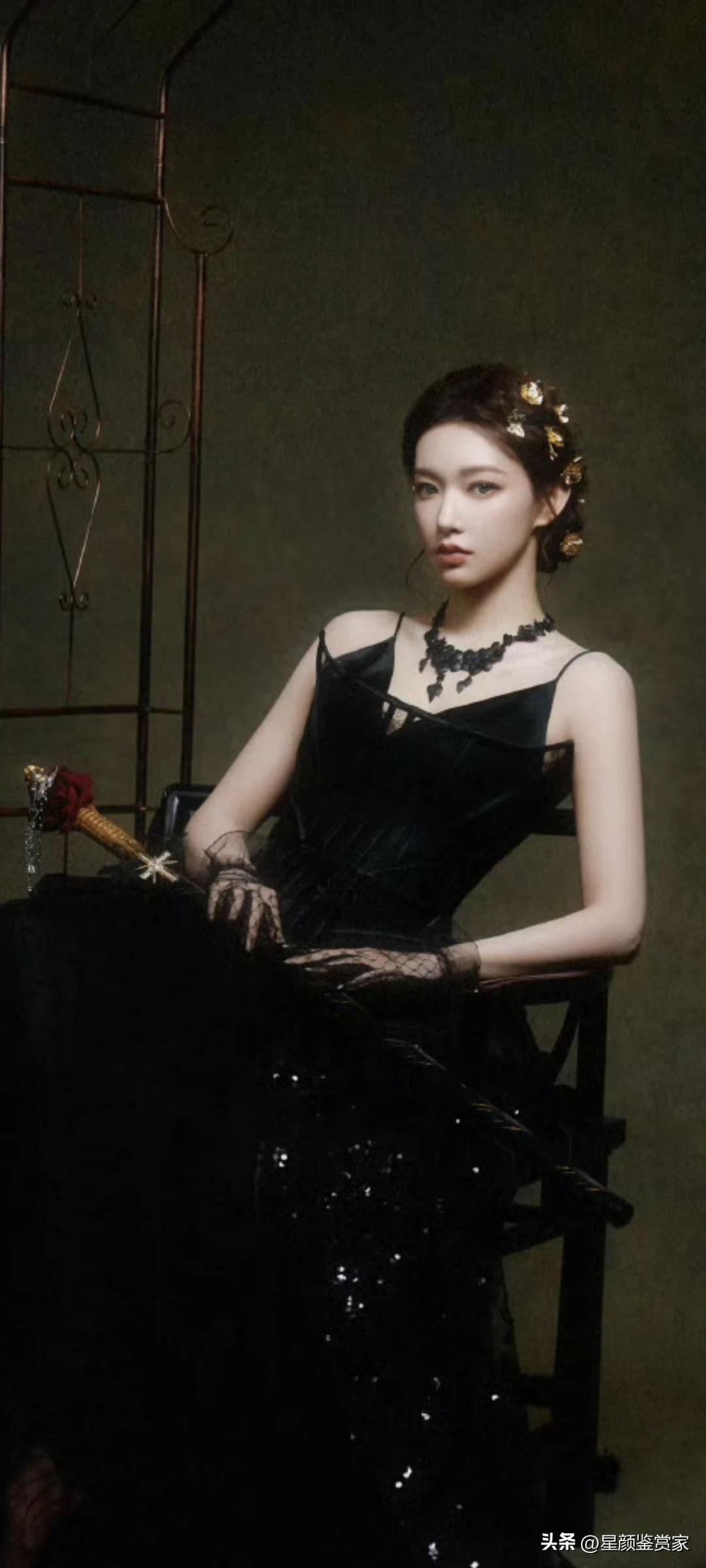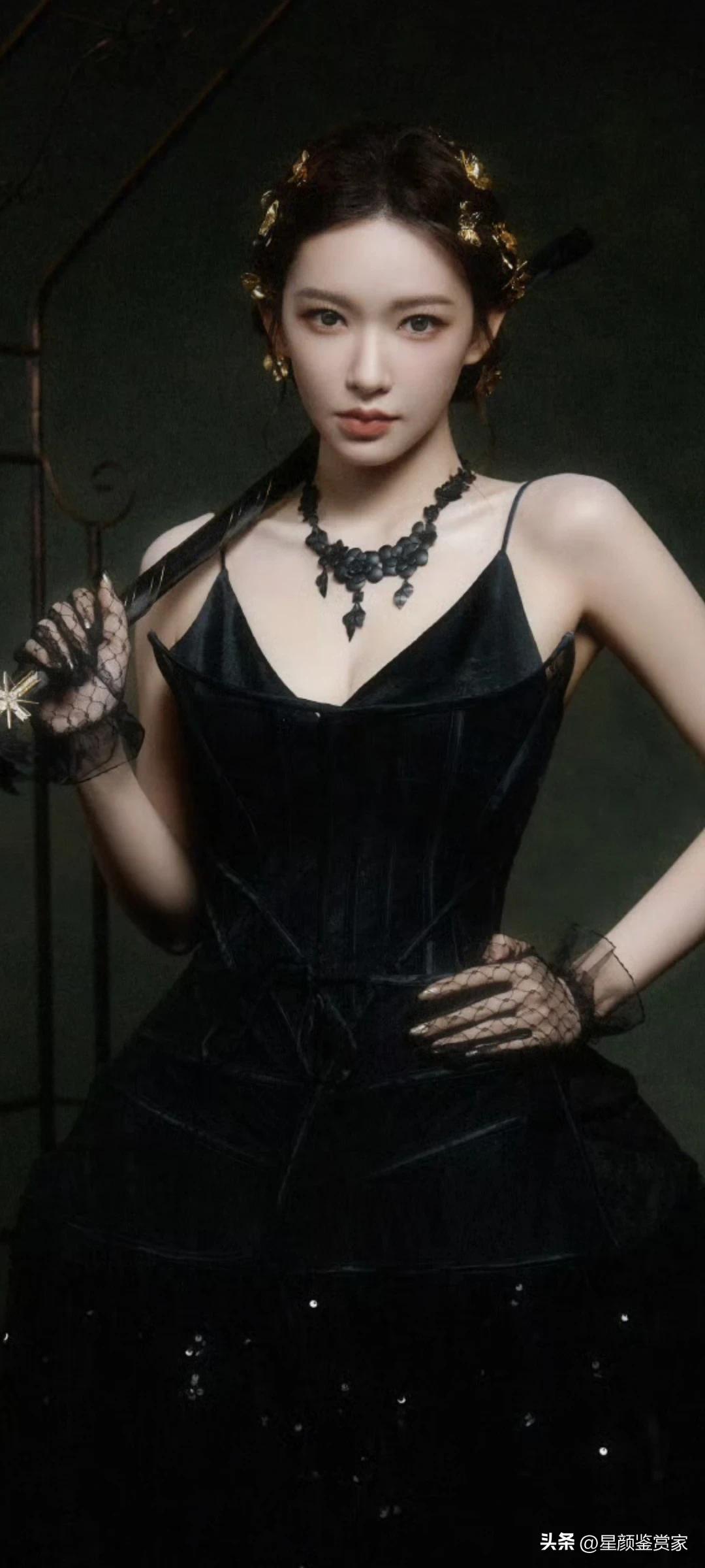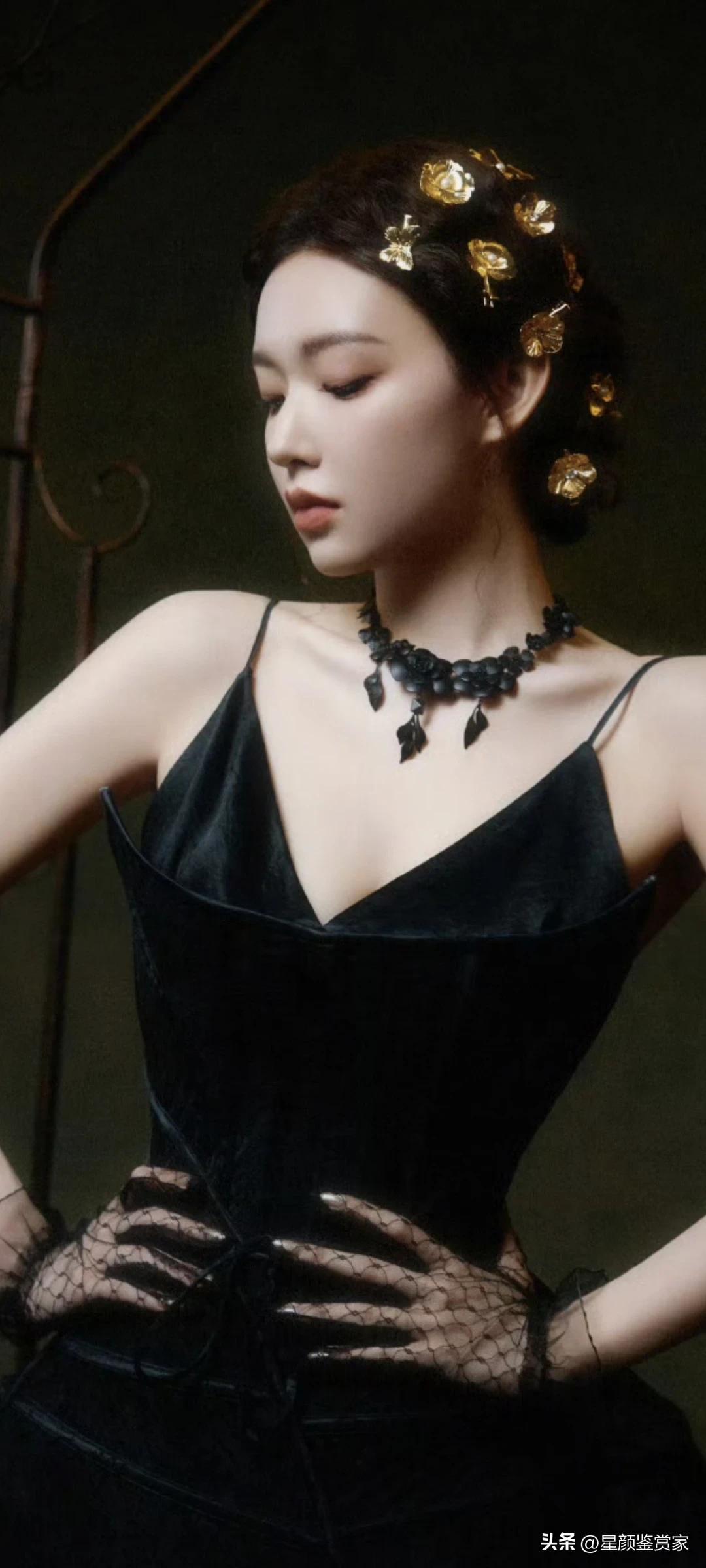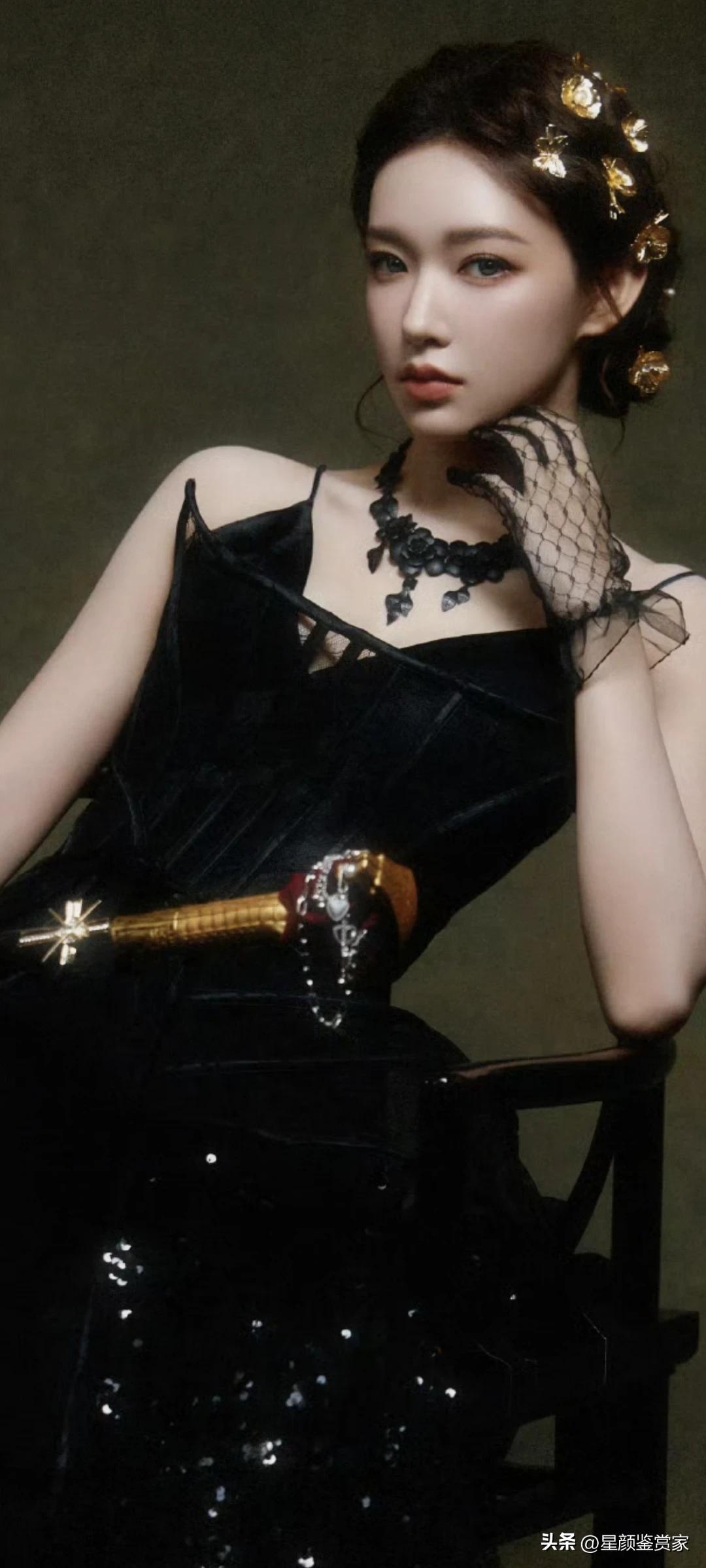 程潇壁纸~蕾丝手套+黑色吊带裙性感又优雅。