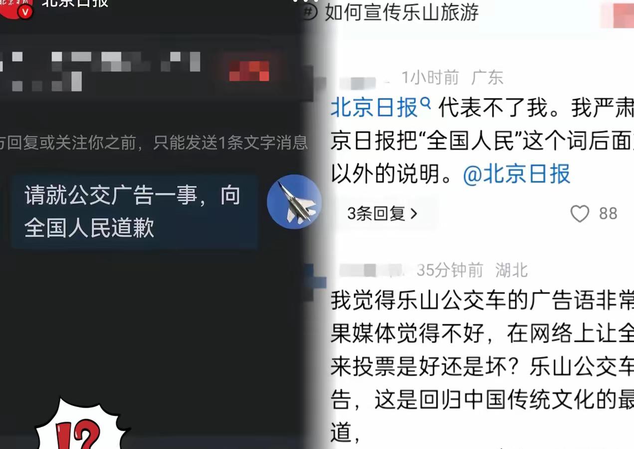 笑不活了 北京日报,凭什么替我要求乐山道歉? 这是拿“全国人民”当挡箭牌了?我第一个不答应,也不需要这份道歉! 咱就打开天窗说亮话,这几天网上吵得沸沸扬扬,闹了半天就为了一块公益广告牌。人家乐山本地司机都说了,那就是正常得不能再正常的标语,流程走得板板正正,结果愣是被翻出来扣了个大帽子。最冤的是啥?前台一个小姑娘,跟这事儿八竿子打不着,硬是被骂到抹眼泪,你说这叫什么事儿? 媒体有立场,这个咱懂,你批评也好,你建议也罢,大大方方亮出自己的名号就行。可你一张嘴就是“全国人民要求乐山道歉”,我咋不知道自己被代表了?我身边亲戚朋友同事,挨个问了一圈,没一个人觉得那广告有问题。这不就是典型的断章取义么?掐头去尾截个图,连完整画面都不看,前因后果不问,上来就喊道歉,这不是耍流氓是啥? 说句不好听的,现在有些人就喜欢拿着大喇叭站高地,口号喊得震天响,好像谁嗓门大谁就有理。可真相呢?真相往往就藏在那些被剪掉的画面里,藏在那些没人关心的细节里。真要讲道理,你就把证据摆出来,把完整视频放出来,让大家自己看、自己判断。拿“全国人民”当盾牌,既显得心虚,又不讲武德。 更可气的是,这种操作最后受伤的永远是最底层的人。广告牌前头的小姐姐,她就是个打工的,她能决定挂啥不挂啥?结果铺天盖地的骂名落到她头上,哭都没地儿哭。媒体大佬们发完文章拍拍屁股走了,剩下的烂摊子谁收拾?还不是这些普通人硬扛。 咱不是说媒体不能监督,也不是说所有舆论监督都不对,但你得讲理啊。扣帽子谁不会?可帽子扣错了,伤的是人心。这个社会需要的不是谁嗓门大,是谁能把事情说清楚。别动不动就“代表”这个“代表”那个,你代表好你自己就行。 各位读者你们怎么看?欢迎在评论区讨论。
