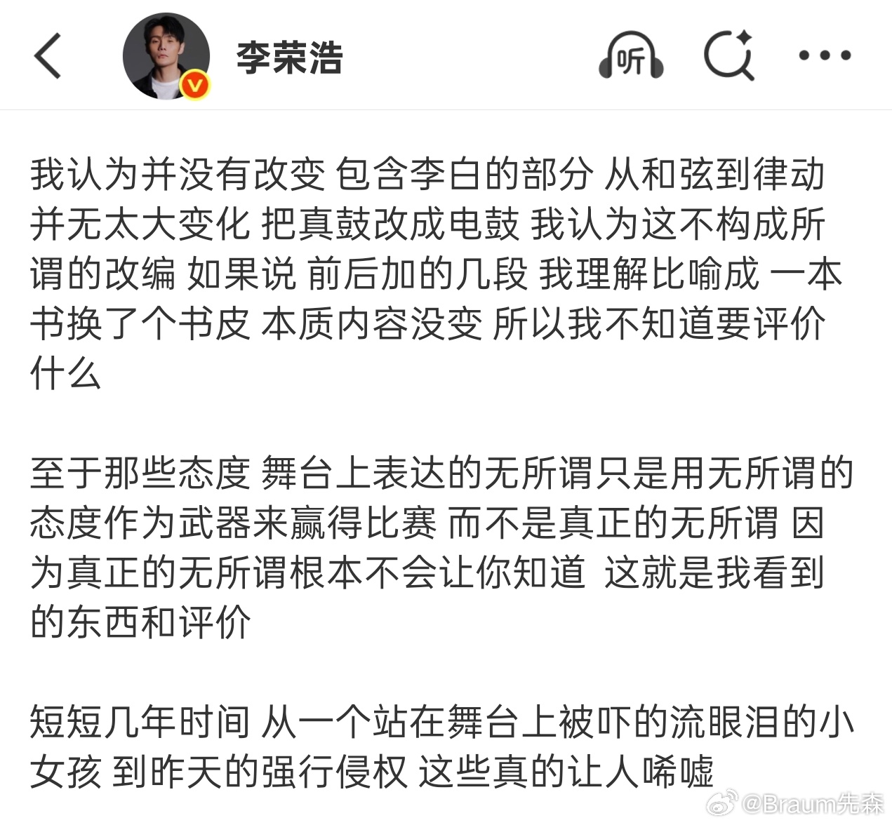 我天,李荣浩开撕单依纯,关于李白翻唱事件。