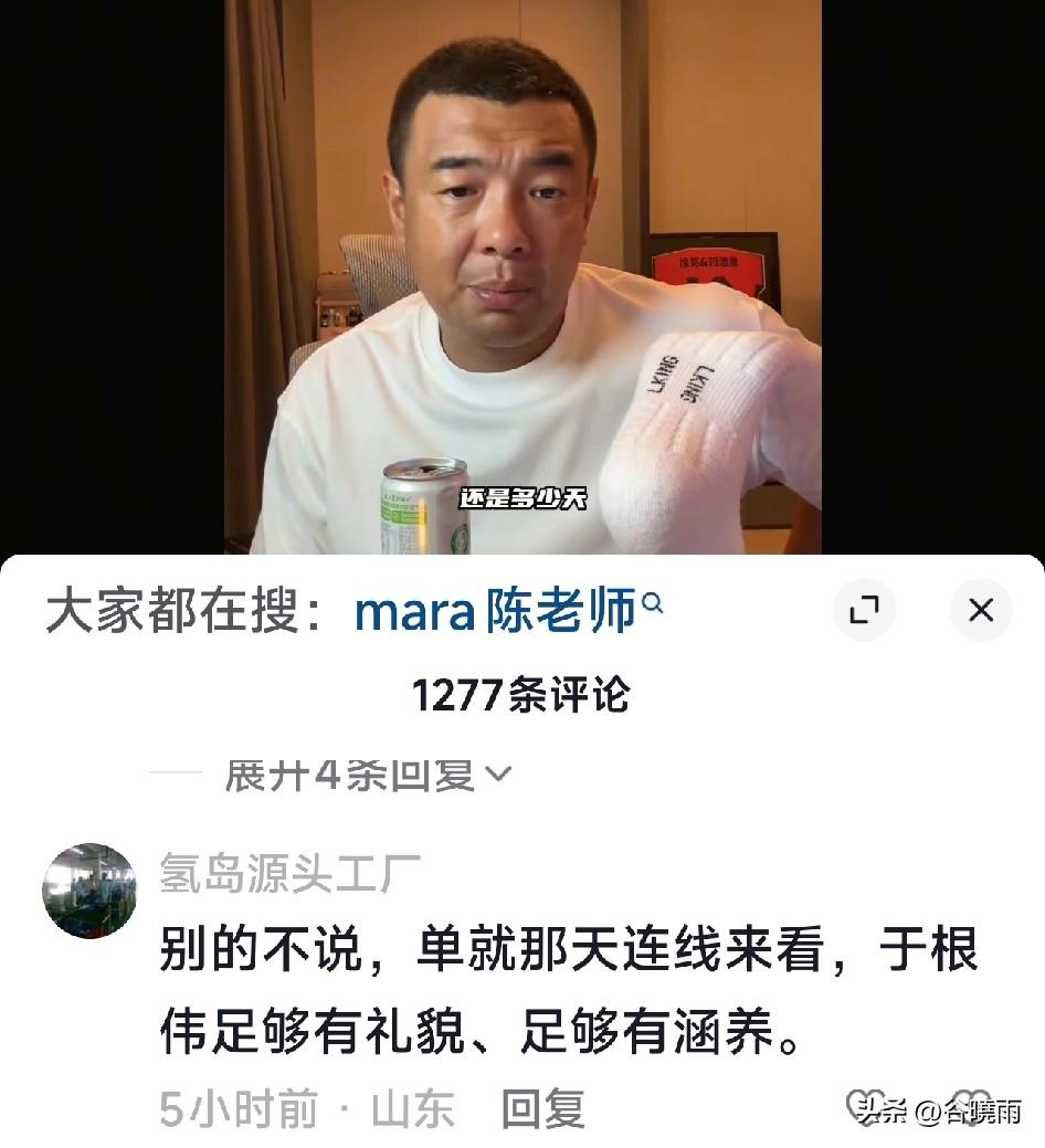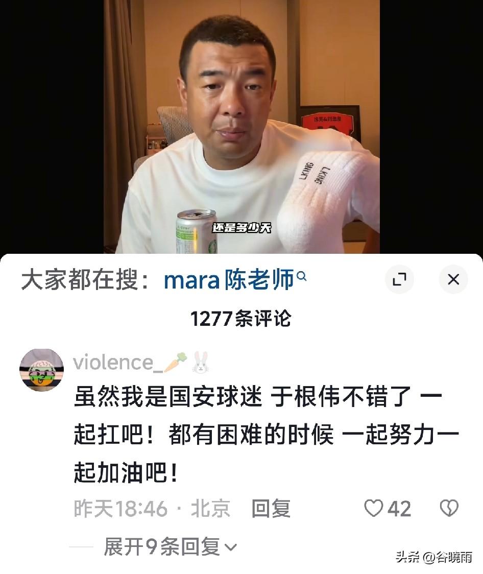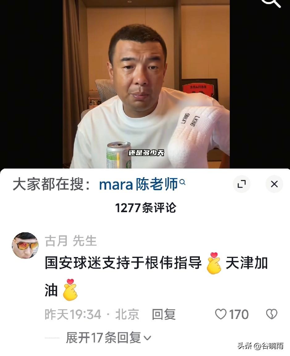 从徐亮力挺于根伟的视频切片中看到一个有意思的事,很多外地球迷都支持于根伟。而像于根伟连线的陈老师那样,竟然有部分天津球迷反而不支持于根伟。 于根伟与陈老师连线事件过去多日了,但在网络上是热议的事件。前国脚徐亮发视频力挺于根伟(徐亮无论当球员还是做教练都与于根伟没有交集) 徐亮说于根伟不是听不见意见,他已经委婉的回答了一些问题,有些事他没法说。 于根伟是天津足球泰斗人物,他带不好就没人能带好,天津这几年投入只有一个亿,天津取得这个成绩已经非常不错了。 虽然两负一平不太好,徐亮坚信天津津门虎掉不了级,退一步哪怕掉级,明年就打回来。 世界上哪支球队没遇到过困难,英超冠军都掉级了,天津球迷支持于根伟就完事了,有困难一起扛。 在评论区除了天津球迷有北京球迷,还有山东等其他地区的球迷都支持于根伟。 那些反对于根伟的部分天津球迷应该反思一下了!