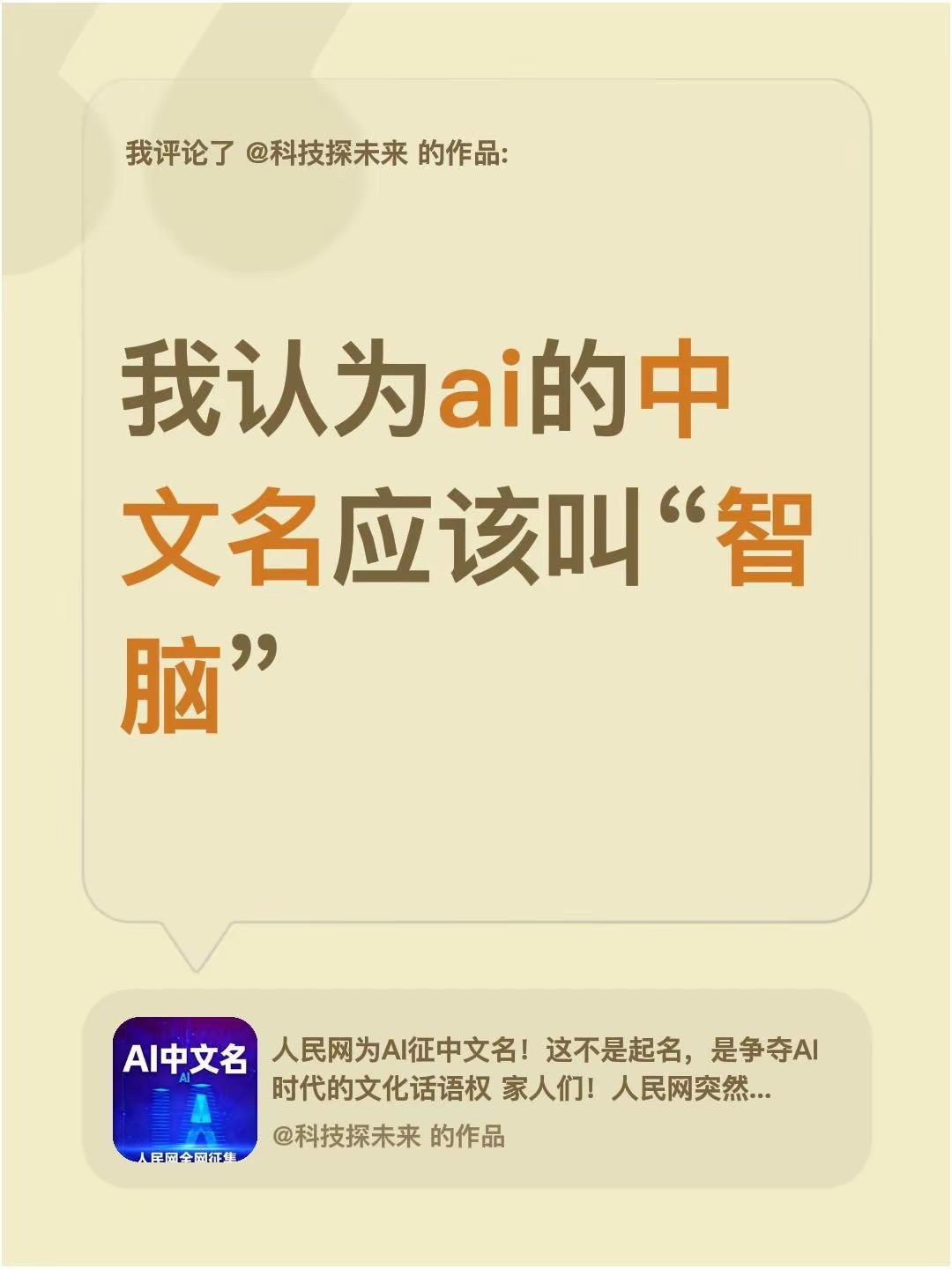 我评论了@科技探未来 的作品: 我认为ai的中文名应该叫“智脑”