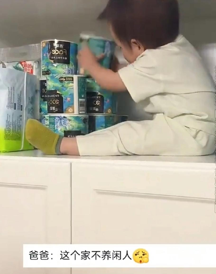 宝宝比较调皮捣蛋,令宝爸宝妈头疼。辽宁一宝爸想出了一招,让宝宝乖乖的听话。 3月26日,宝爸在家带娃。家里面买了一大袋纸巾,宝爸想,正好可以和孩子做活动游戏。对孩子说,这个家不养闲人,你把这些纸巾摆放好。宝宝点点头答应了。 宝爸把孩子举进柜子里,让其坐下。然后把纸巾递给孩子,让他摆放整齐。纸巾要码三层,码放得不好就会倒塌。宝宝不得小心翼翼地摆放,最终把纸巾都摆好了。看到自己的劳动成果,宝宝开心的笑了。 培养孩子热爱劳动,即可让孩子有成就感,也可消除孩子的“娇、骄”二气,也让家长省心不少。 宝宝坐柜子里配合爸爸摆放纸巾宝爸带娃 培养孩子调皮的乖孩子 家长省心小技巧