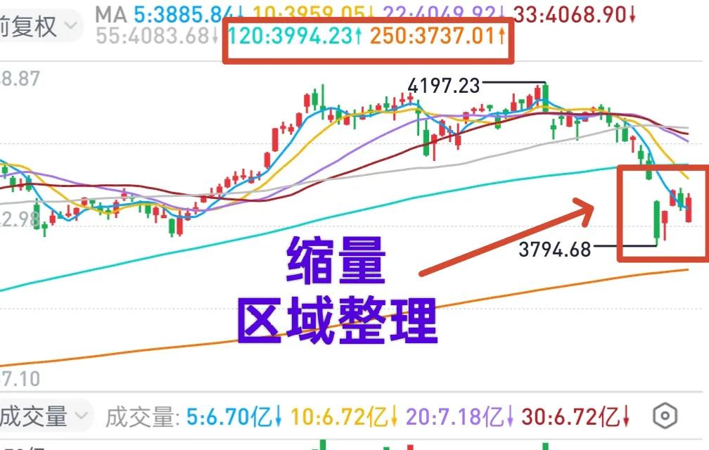 A股:大盘区域整理,警惕个股风险。 3月2日,渔夫警示大盘风险,主要依据是当日成交量“异常”放大,而未来一段时间的市场风险,则源于成交量的逐渐萎缩。 此次大跌,不过是应验了渔夫2月25日的预测:3 - 4月份会有“深刻”调整(大跌)。 3月2日,沪深两市成交金额较前一交易日“异常”放大5000亿,这是大盘后市下跌的主要技术特征。 3月3日早盘冲高诱多后,大盘放量下跌,阶段性调整拉开帷幕。 上周五,沪市成交金额为7997亿。 这是2026年1月5日以来,沪市单日成交金额首次跌破8000亿。 3月3日当天,沪市成交金额超1.4万亿。 从1.4万亿降至不足8000亿,成交金额缩减了6000亿。 成交金额的缩减,已然表明市场状态——疲弱! 相对较低的成交量,预计会持续一段时间,可能延续至4月中下旬。 这段时间的主要目标是消化上方的套牢筹码,进行市场结构性重组,修复均线系统。 期间大盘的活动区间预计在MA250均线和MA120均线之间。 目前MA250均线位于3737点(每日大约上行2个点),MA120均线位于3994点。 在缩量区域整理的背景下,大盘风险可控,但部分个股的风险可能会因为缺乏量能支持而放大。 个人观点,仅供交流,不构成投资建议!理财有风险,投资需谨慎! 大盘分析行情