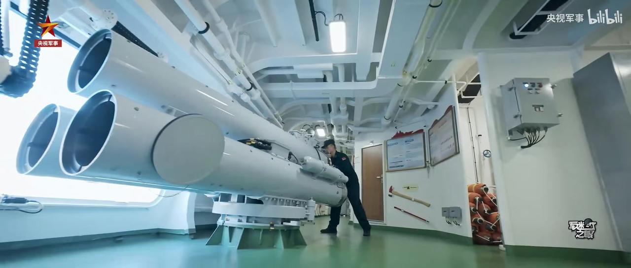 “无粉底、无美颜”的海上硬汉-人民海军054B钦州舰,武备、鱼雷发射管特写画面。