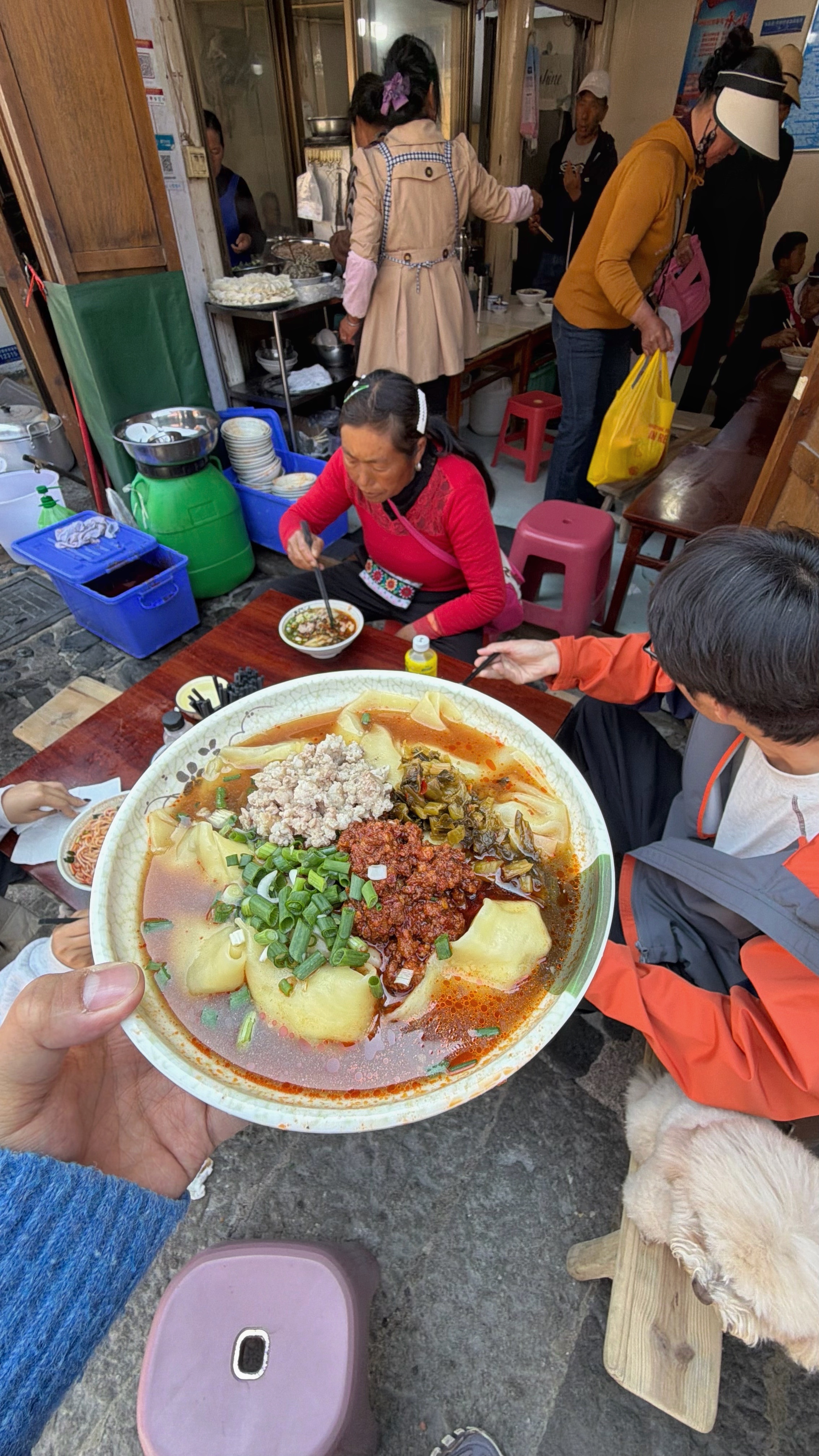 在大理剑川待一天,有啥好吃好玩的,今天带你们沉浸式逛一遍!来剑川,除了看看漂亮的剑湖和爆火的沙溪,还要去剑川古镇走一走。早餐就吃这家双盖帽抄手,几十年老店了,个个都是现包的,个头大、吃着特别扎实。还有米线和饵丝,大理饵丝一定要尝尝,很有本地特色,当地人爱吃的很。附近还有家小笼包也不错,老板亲手包的,皮薄馅大,吃着超满足。吃完早餐,直接逛剑川古镇。这条老街安安静静的,目前没有游客,也没有网红店,就是本地人平常生活的老街样子,烟火气特别浓。我们今天运气真的好,刚好赶上白族太子街,这是当地很有特色的民俗活动,很热闹,能真切感受到白族的传统文化,很难得遇上。午饭我们直接开车往山里走,去找剑川特色——梨园三道菜。这家店口碑很好,食材新鲜,味道实在,很多人专门开车来吃。都是活鸡现做,可以一鸡两吃,一半黄焖鸡,一半炖鸡汤。用的是纯菜籽油,搭配花心洋芋、白水萝卜,炸干辣椒,味道特别香。老板还送了自家泡的咸菜,我是四川人,口味比较挑,云南吃过的很多咸菜我不太吃的习惯,不过他家咸菜不咸不淡,口感刚刚好,我真的很爱吃。鸡汤炖得金黄浓郁,鸡肉鲜嫩,食材都是实打实的好,真心值得专门跑一趟来吃。剑川这一天,吃得舒服、逛得自在,没有拥挤人潮,只有安安静静的烟火气。来云南玩,别只盯着大理丽江,像剑川这样的小众地方,才更有味道。喜欢安静逛吃、吃地道美食的朋友,真心可以来走走。云南旅游攻略君大理旅行剑川古城 大理·剑川