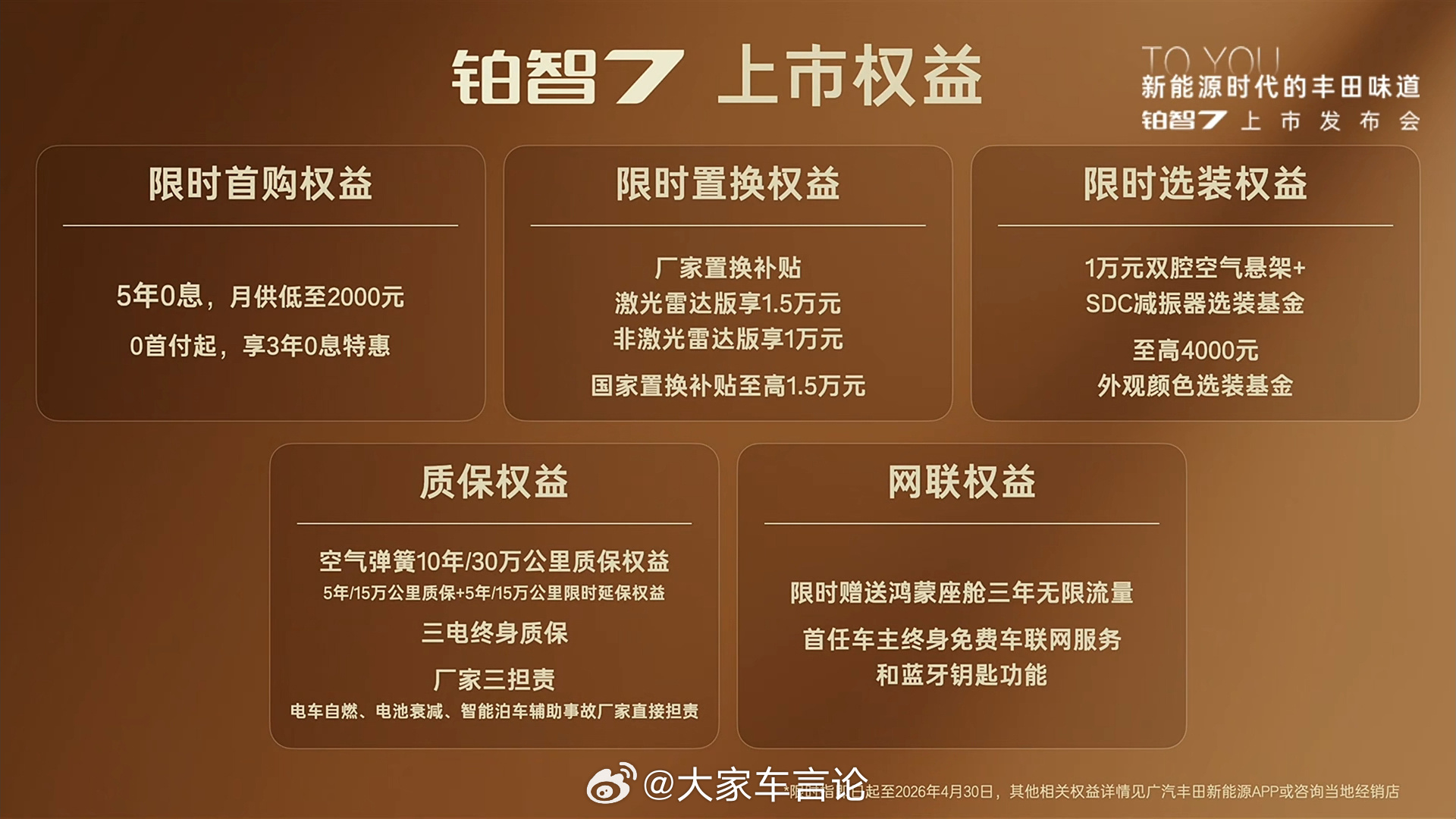 铂智7上市限时补贴权益价14.78万起丰田铂智7限时补贴权益全系20万内
